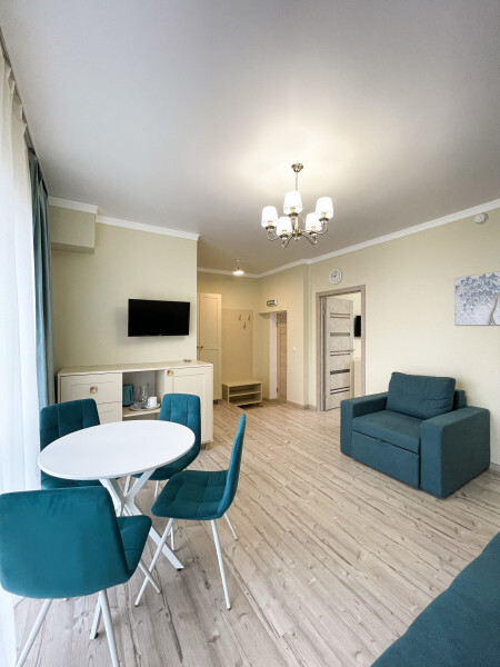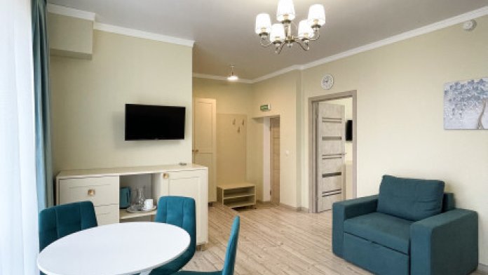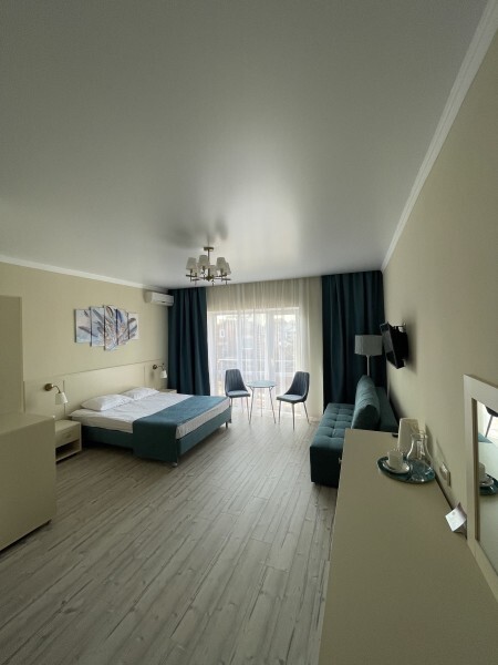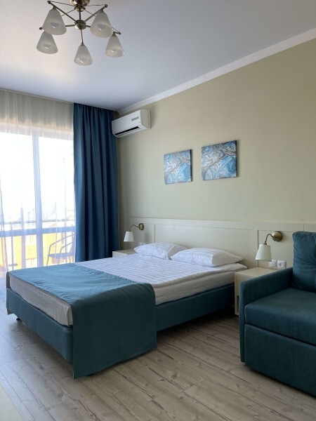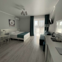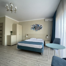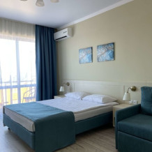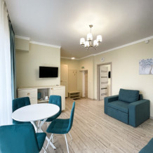 В номерах двуспальная кровать, двуспальный диван и одноместный диван. Номера данной категории есть с балконом и без, а так же с межкомнатной дверью или студией - проемом между комнатами.