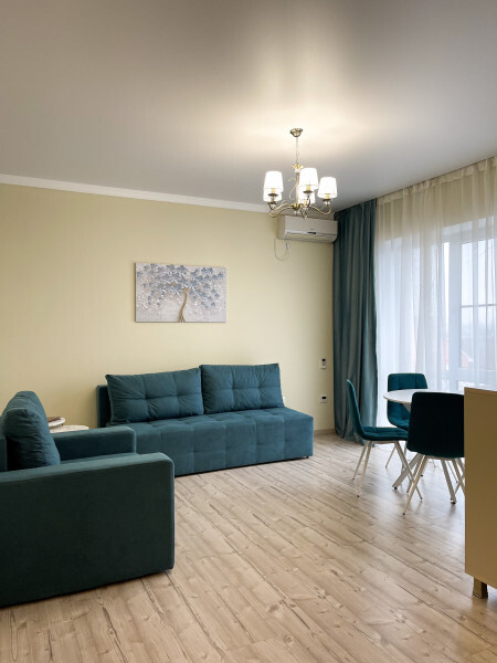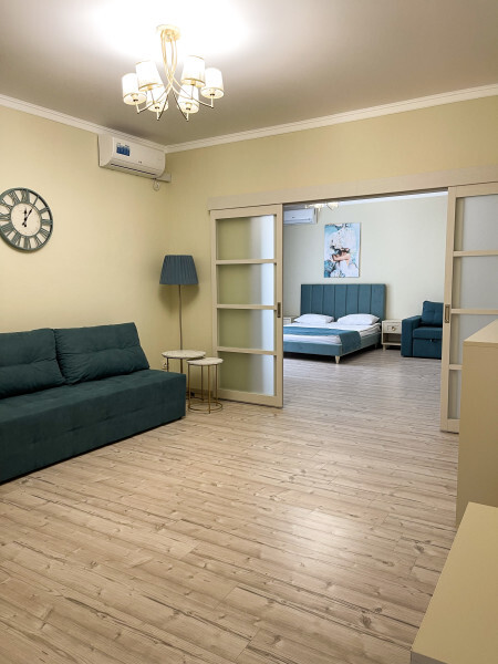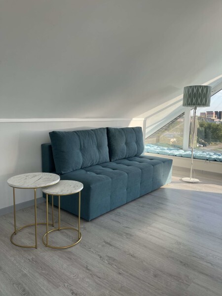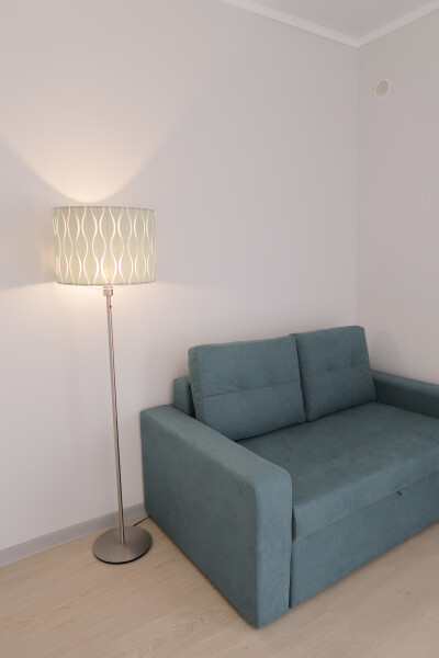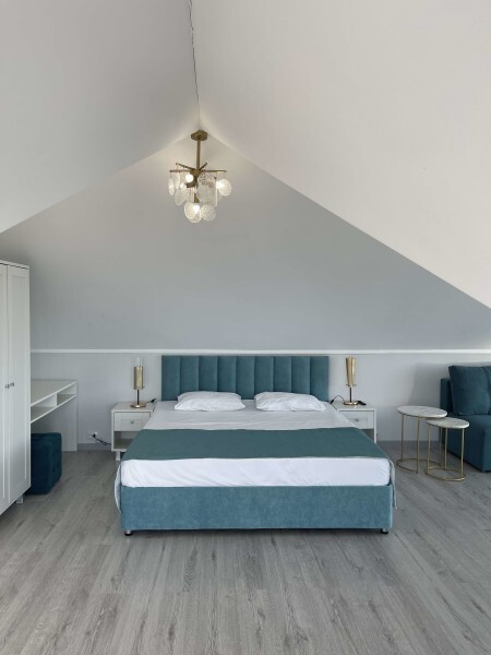 Большая кровать и дополнительный двухместный диван позволят с комфортом разместиться семье до четырех человек.
