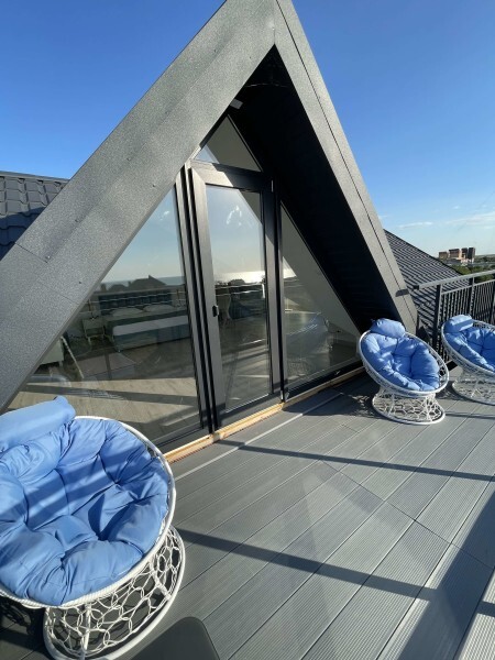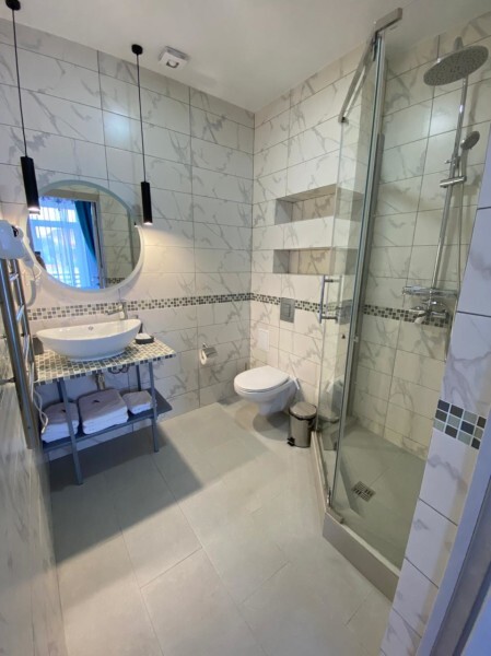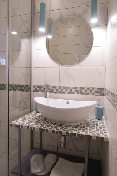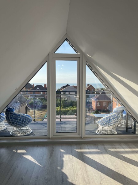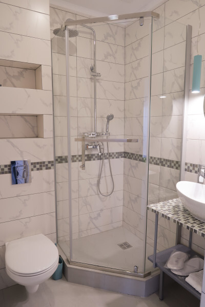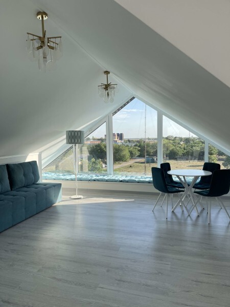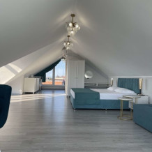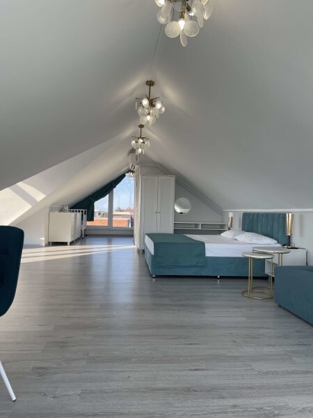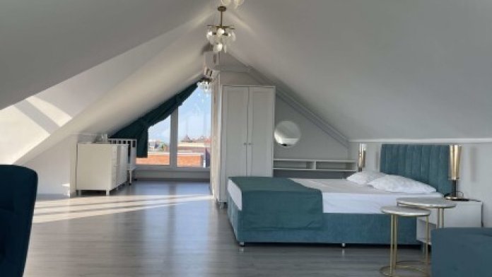 Современный номер на мансардном этаже дает ощущение простора и романтического уюта благодаря окнам, в которые заглядывает небо и море.
