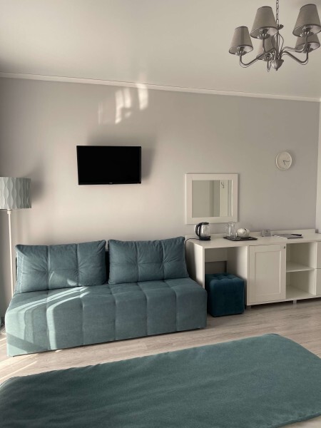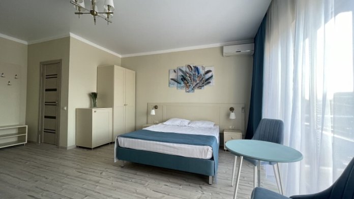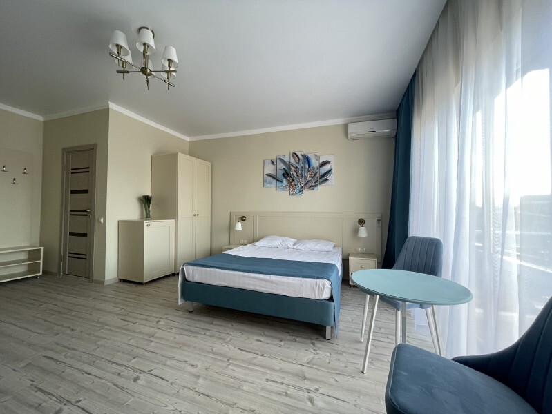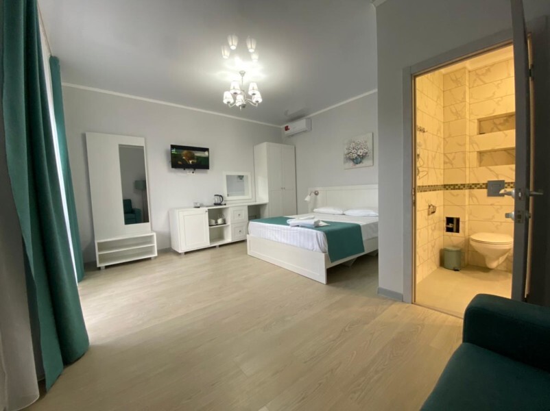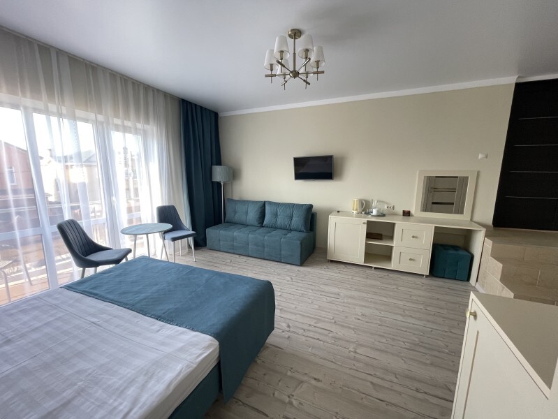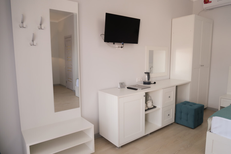 Оборудован всем необходимым для комфортного отдыха. В номере двуспальная кровать и одноместный диван. В наличии номера с балконом или террасой.