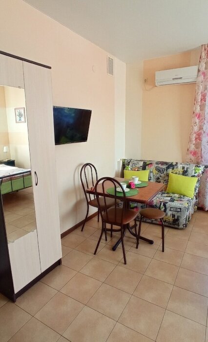 Для комфортного проживания гостям предлагаются полностью оборудованные апартаменты. В каждом из них есть: кровать, телевизор, холодильник, кондиционер, чайник, собственный санузел. Предоставляются постельное белье и полотенца.
