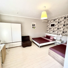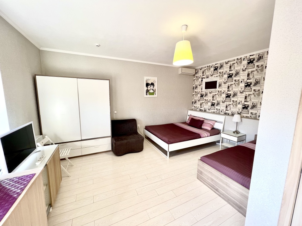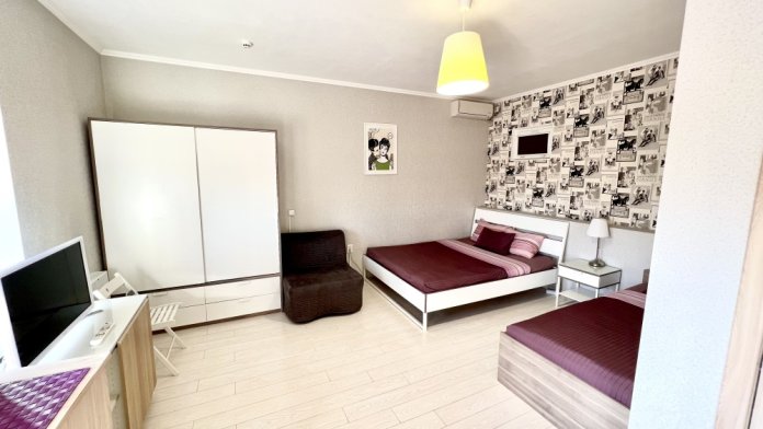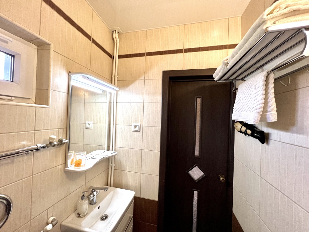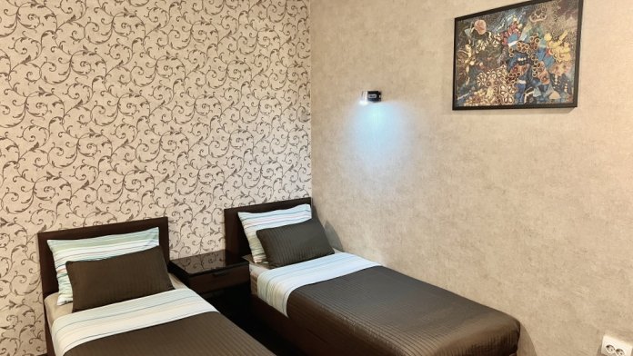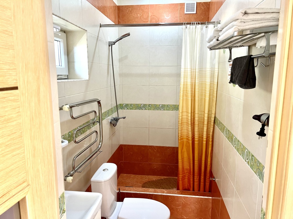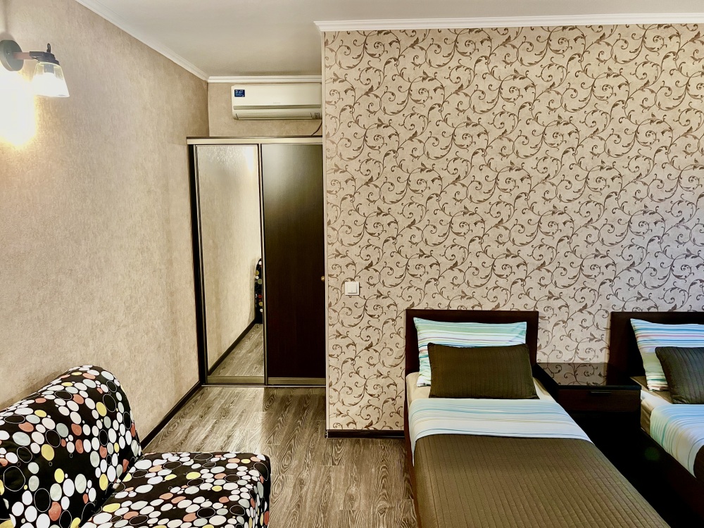 Номер с одной двуспальной кроватью и доп местом. Комфортные кровати с ортопедическим матрасом для хорошего сна. В номере кондиционер , центральное отопление, холодильник, выделенный скоростной интернет, ж/к телевизор, спутниковые каналы, сан. узел с душем