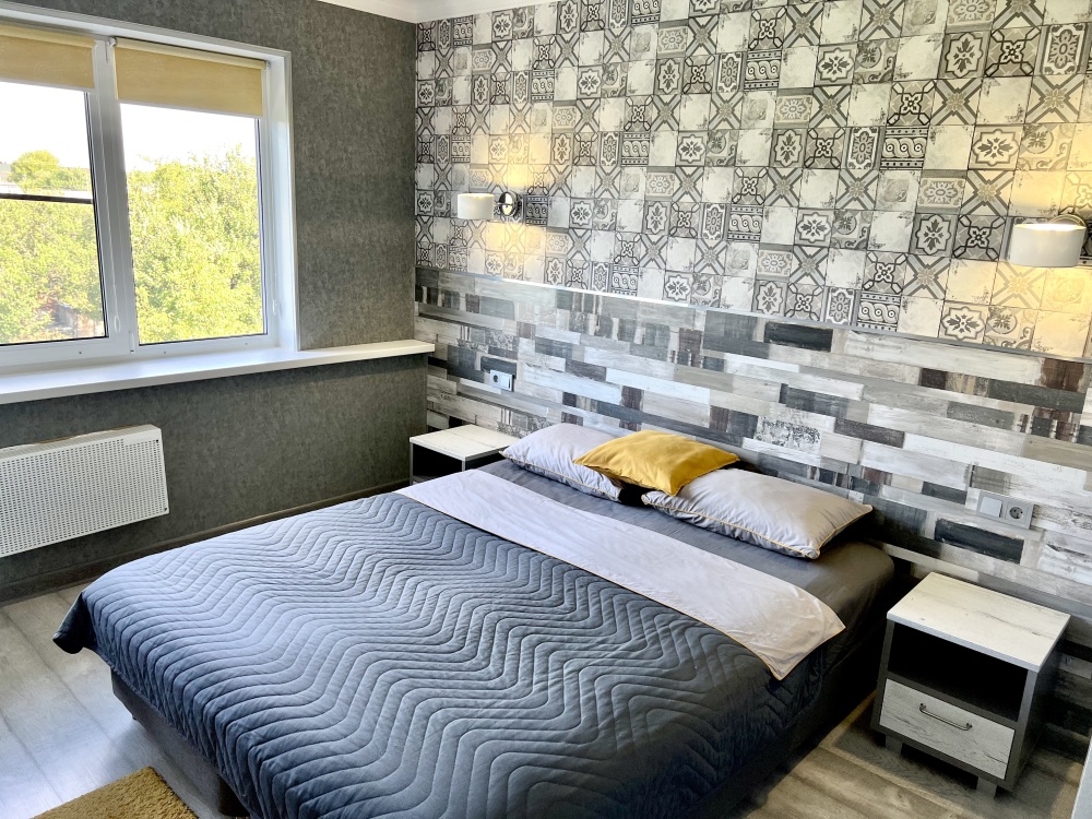 Современный комфортный номер с большой двуспальной кроватью либо с 2 односпальными кроватями.
