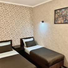 Номер с двуспальной кроватью либо с 2 односпальными кроватями. Имеется доп. место.