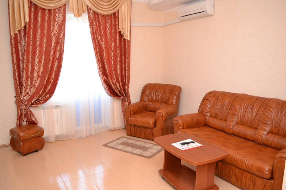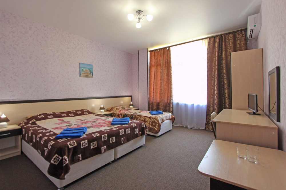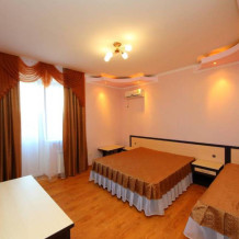 Гостиничные номера (1- и 2-комнатные) оборудованы мебелью евро-стандарта, спутниковым телевидением, холодильником, системой кондиционирования и вентиляции, санузлом, средствами личной гигиены. Смена белья - 1 раз в 7 дней, ежедневная уборка номеров.
