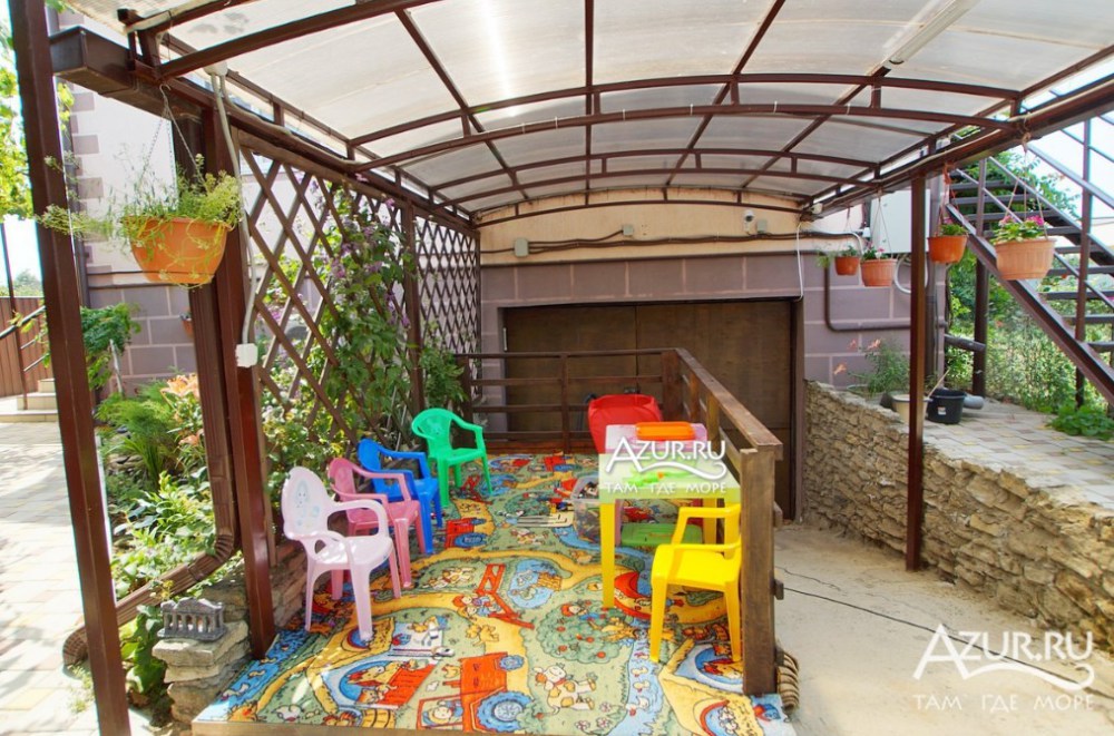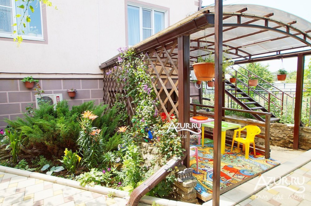 Чистый ухоженный цветущий дворик с уютными беседками, имеется мангал, детская площадка. Есть место для стоянки авто.