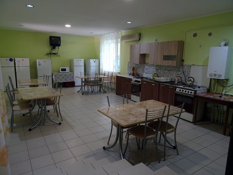 Кухня со всем набором посуды, микроволновая печь, стиральная машина-автомат. На территории - большой двор, детская площадка, песочница, беседка, мангал, парковка для авто во дворе, большой бассейн.