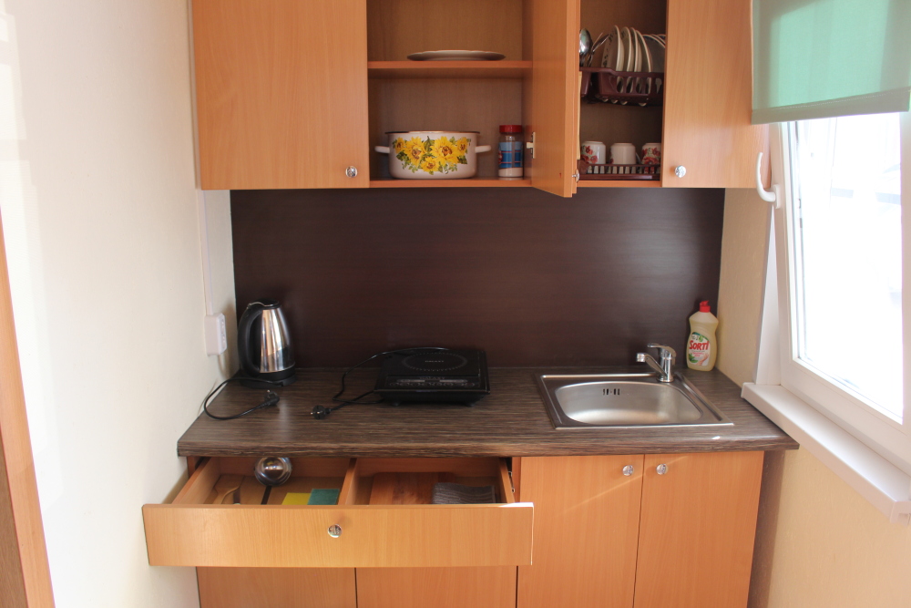 К проживанию предлагаются 8 комфортабельных домиков с мансардой на 4-5 мест. В каждом доме: сплит-система, телевизор, холодильник, оборудованная кухня, терраса.