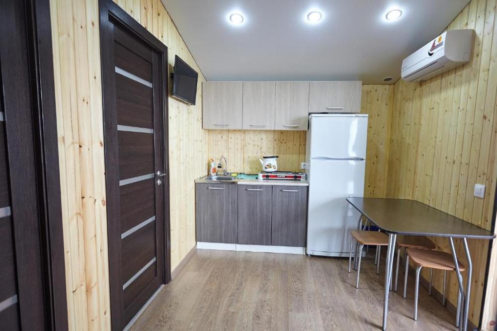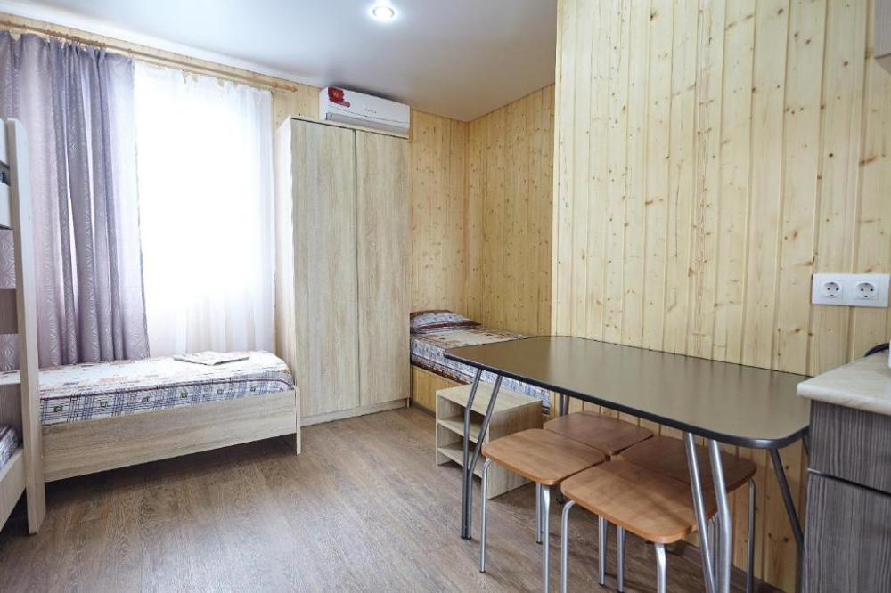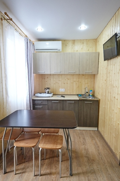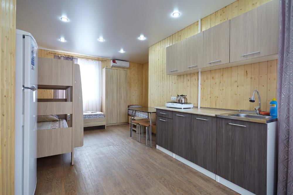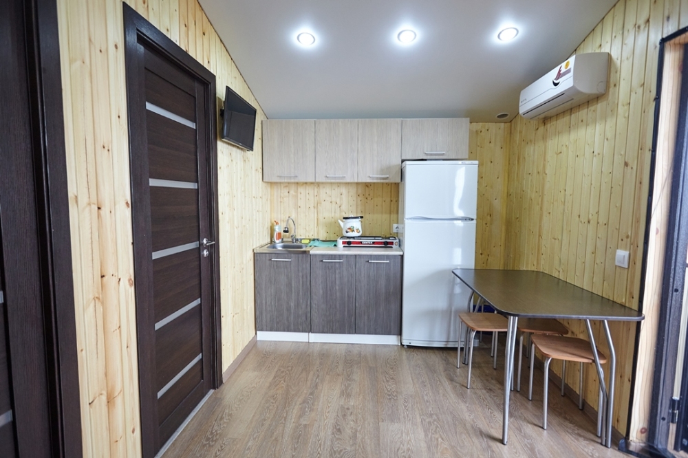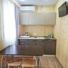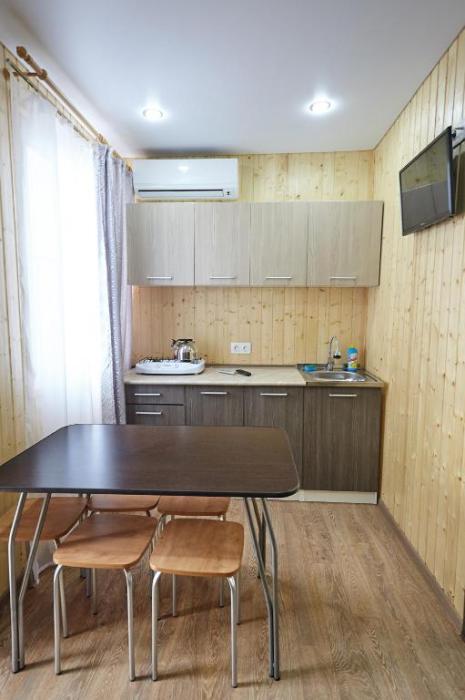 Номерной фонд дома составляют удобные одно- и двухкомнатные номера. Каждый номер представляет собой автономную квартиру с отделкой жилых помещений натуральным деревом и со всем необходимым для комфортного отдыха. В номере кухня-столовая (газовая плита, холодильник, микроволновка, мойка, набор посуды), санузел с душем, телевизор, сплит-система. В номерах работает Wi-Fi.