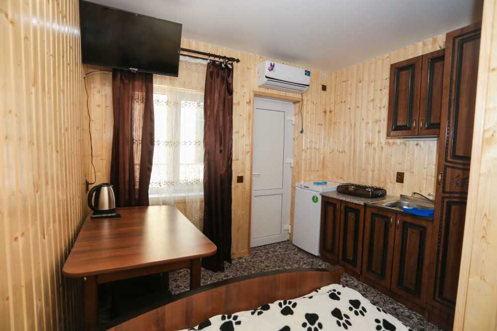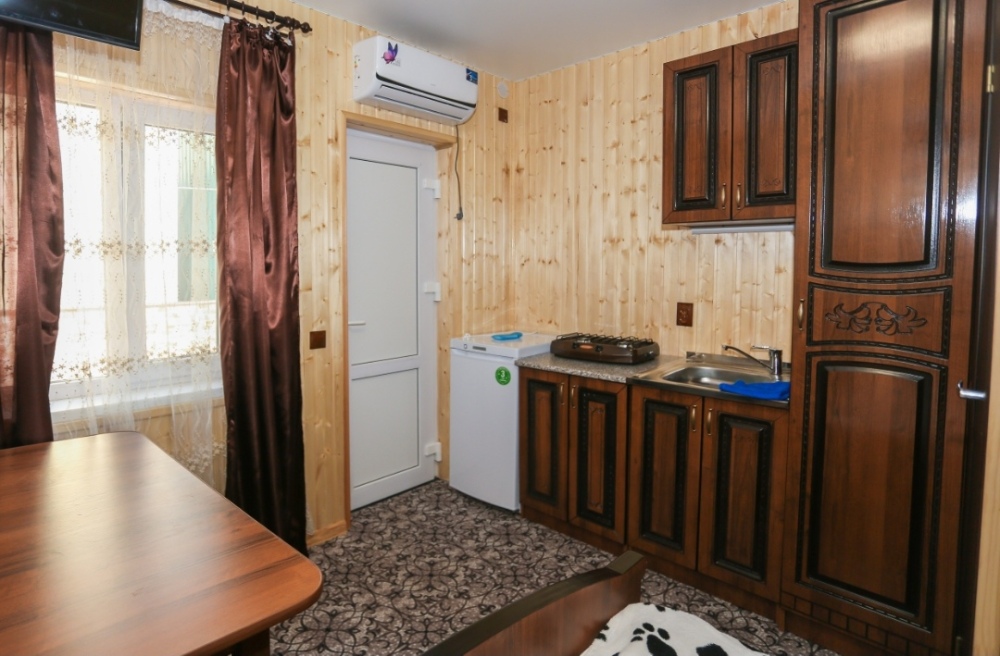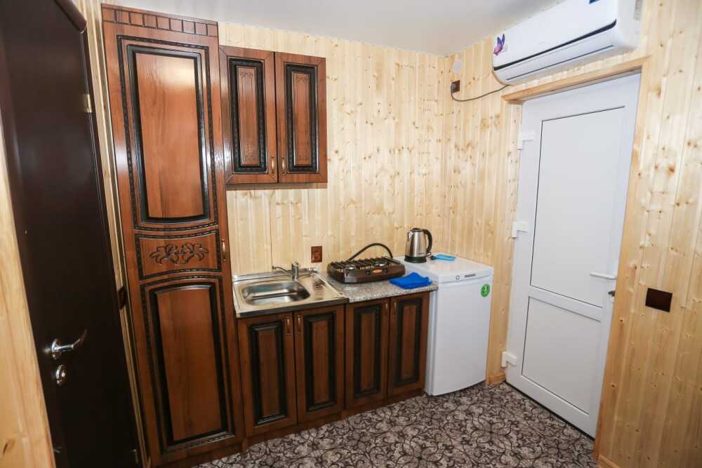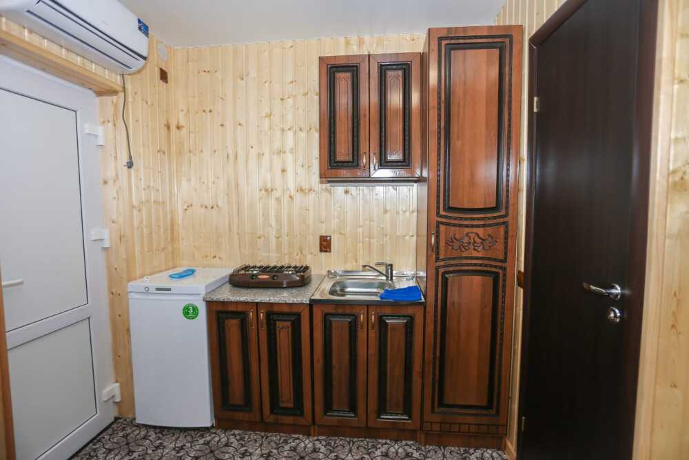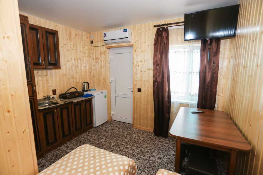 Гостям, для проживания, предлагаются комнаты разной вместимости, со всем необходимым для комфортного отдыха. Каждая комната оборудована собственной мини-кухней, мебелью и бытовой техникой.