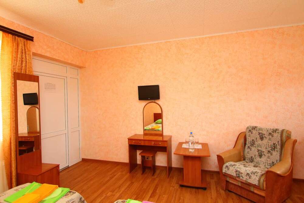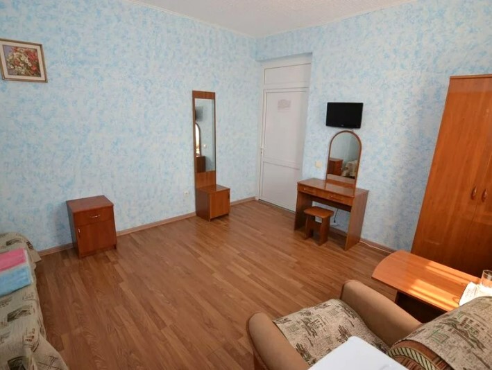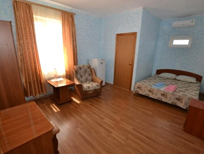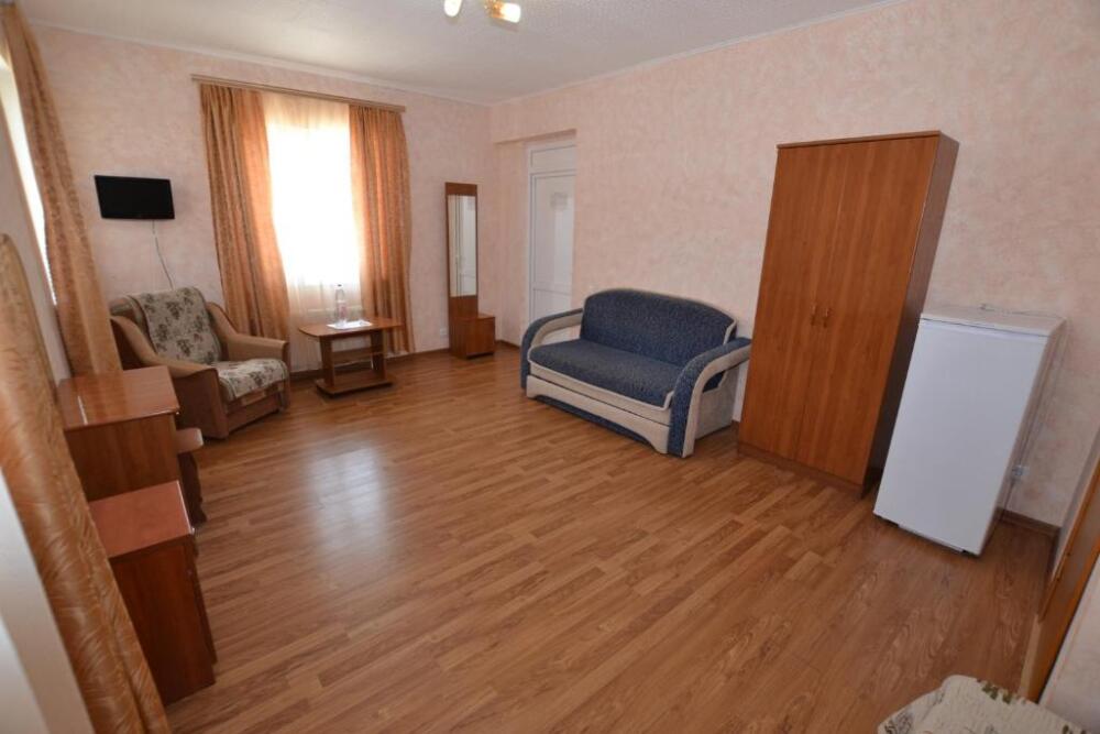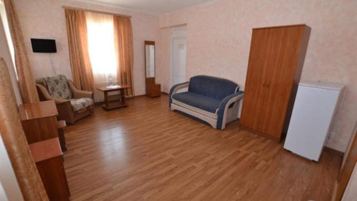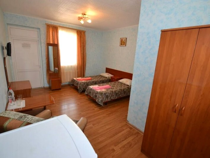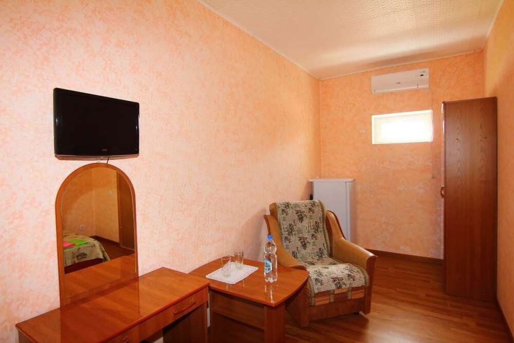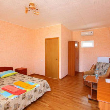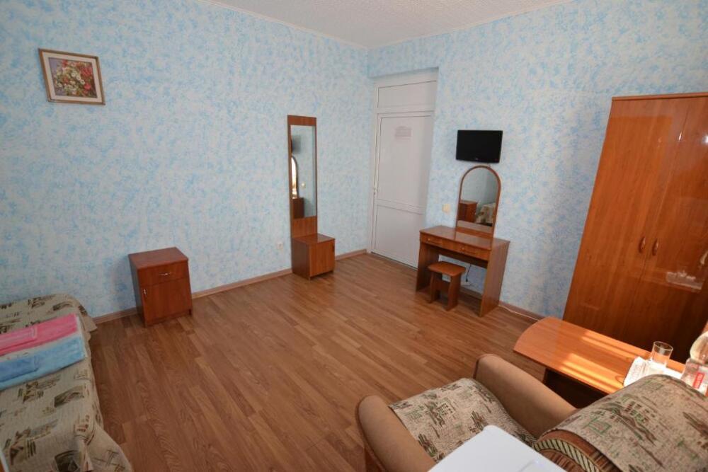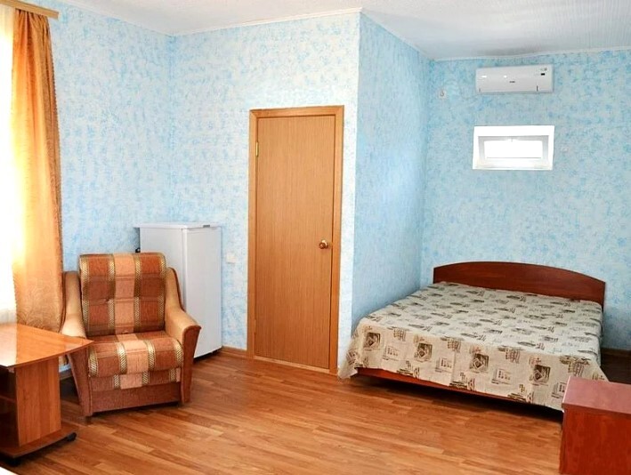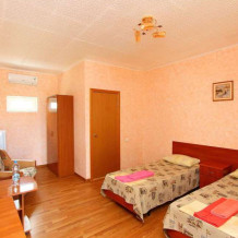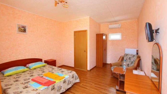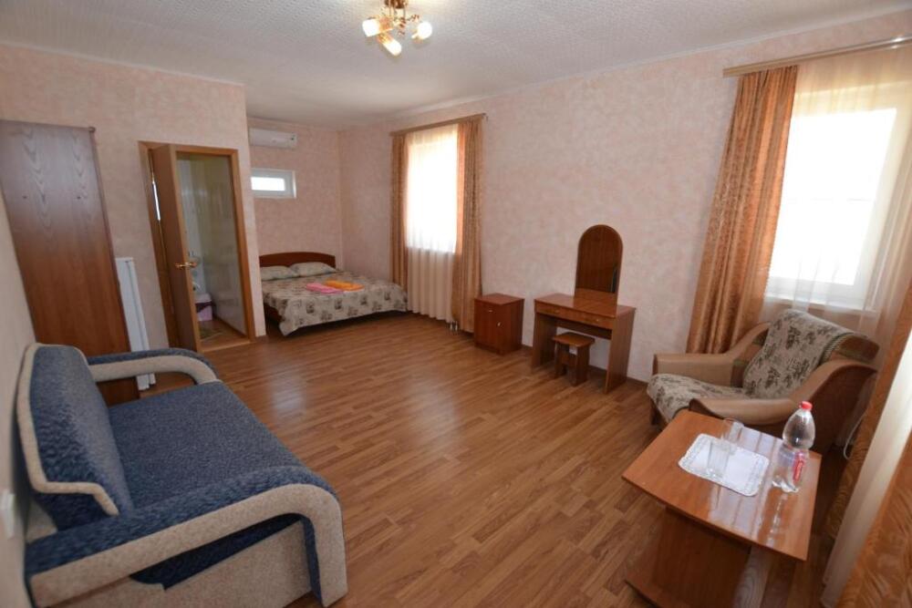 Гостям, для проживания, предлагаются просторные и светлые комнаты со всем необходимым для комфортного отдыха. Большинство комнат в гостевом доме 3-местные. Есть комнаты с двумя односпальными кроватями или одной двуспальной кроватью. Третьим спальным местом во всех комнатах является кресло-кровать (возможна установка ещё одного дополнительного спального места - качественная раскладная кровать). В каждой комнате есть санузел с душевой кабиной, ЖК-телевизор, сплит-система, холодильник, полный набор новой качественной мебели. Из комнат на втором и третьем этажах есть выход на балкон.