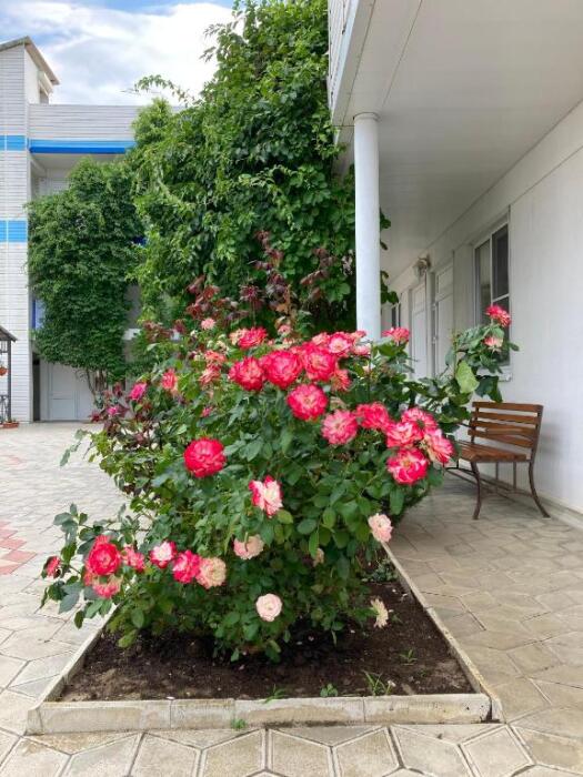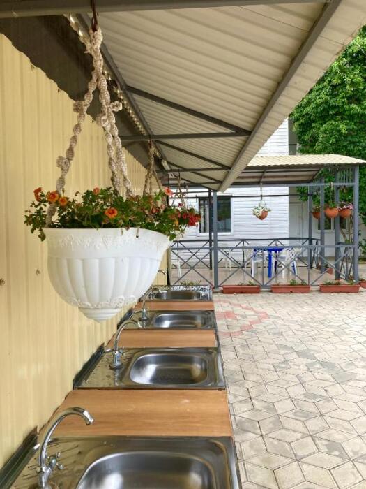 У гостевого дома большой огороженный двор, есть беседка для отдыха, небольшой детский уголок, цветочные клумбы, большая оборудованная кухня со столовой, дополнительные душевые, туалеты и умывальники. Каждому гостю выдаются два полотенца.