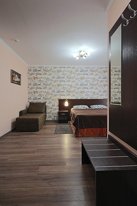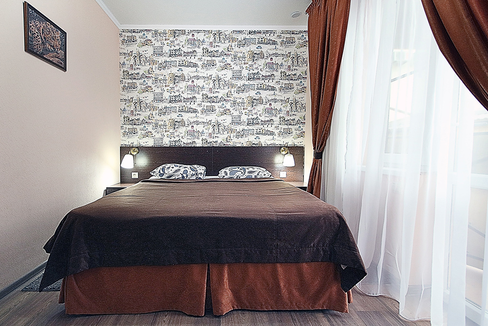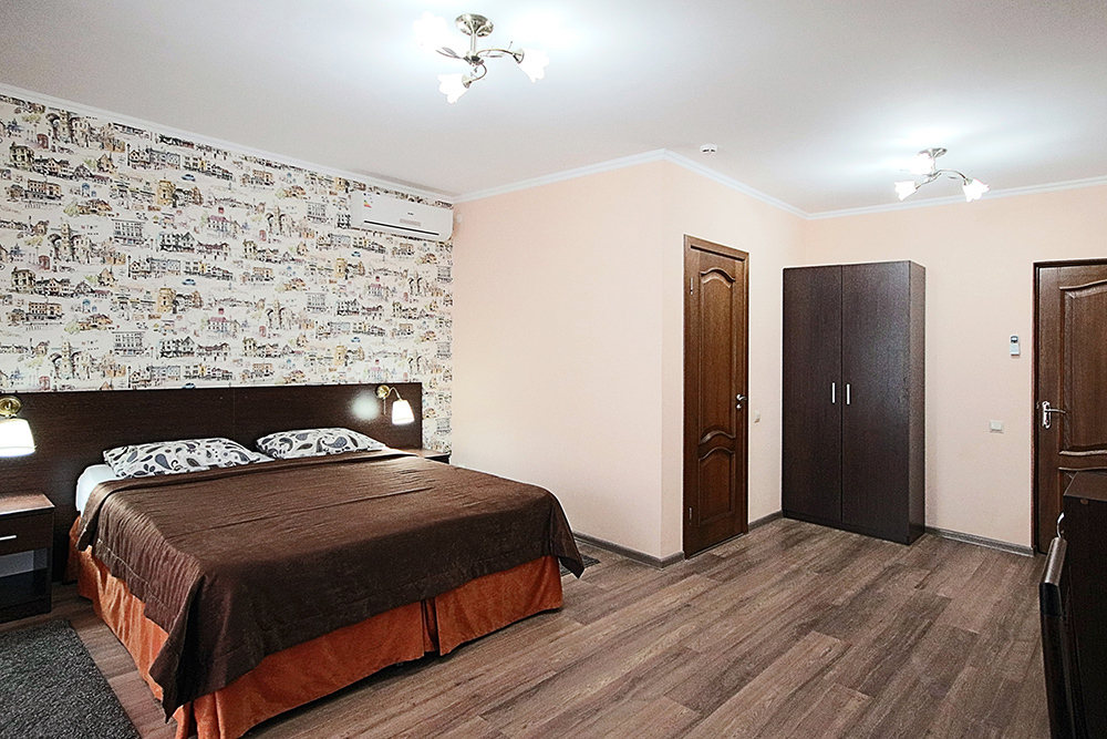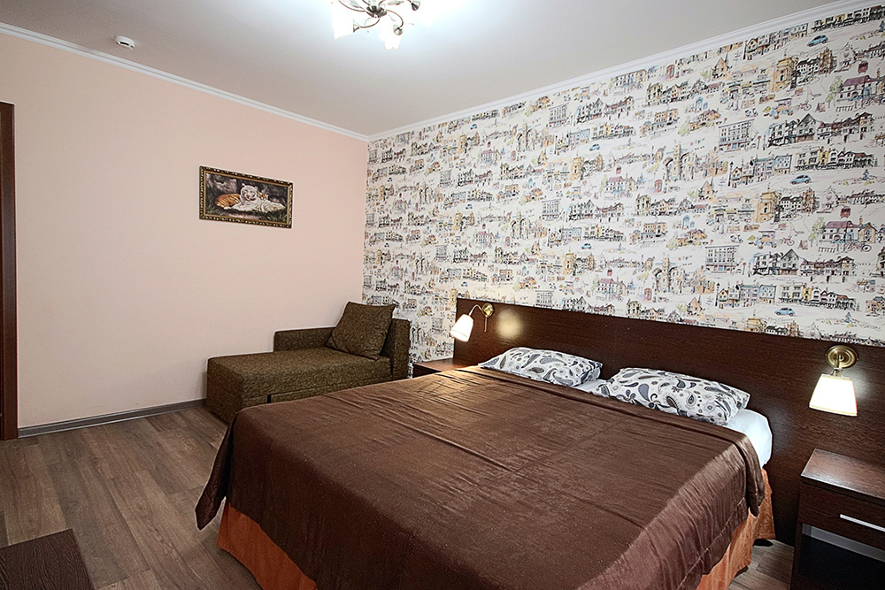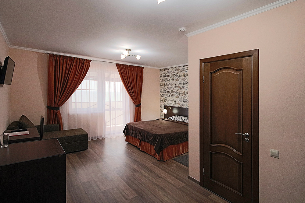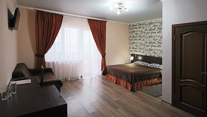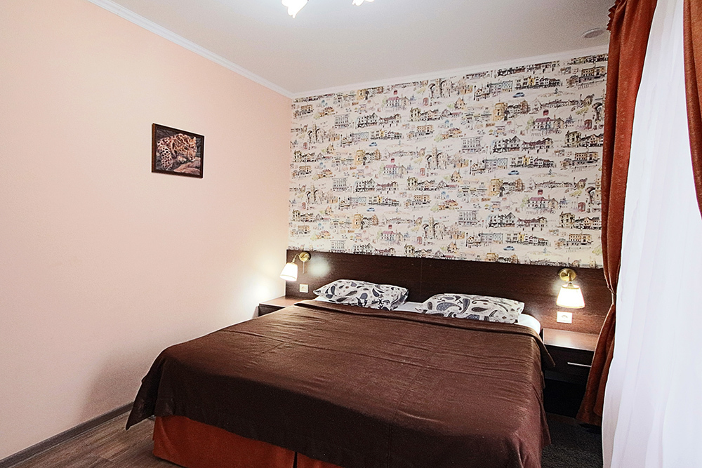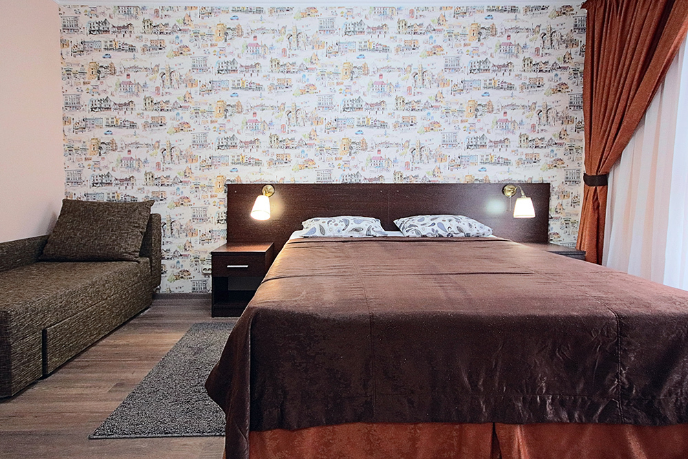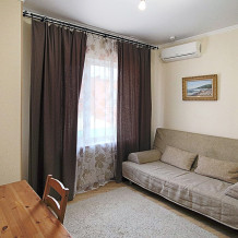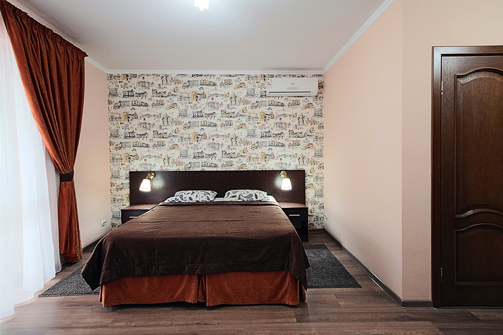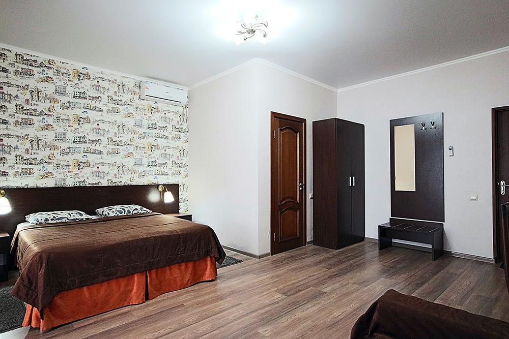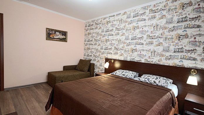 Однокомнатный номер находится в морском корпусе на самом берегу моря. Это прекрасный номер для размещения 2 - 3 человек. В номере стоит двуспальная кровать (либо две односпальные) и раскладная кушетка (полноценное односпальные место).