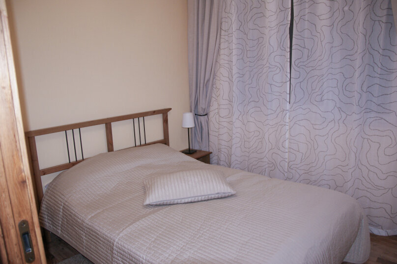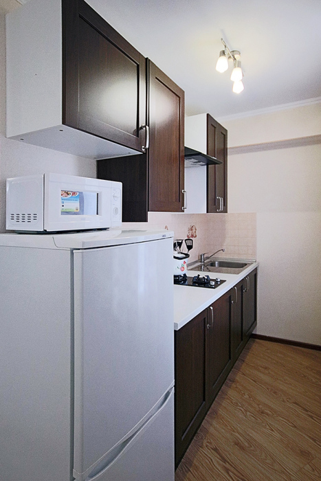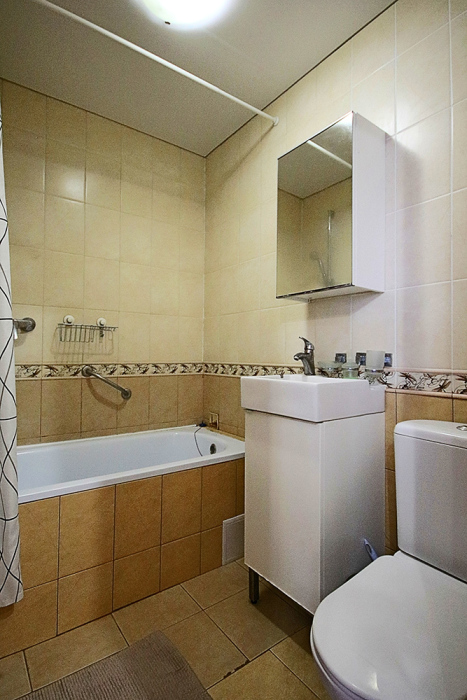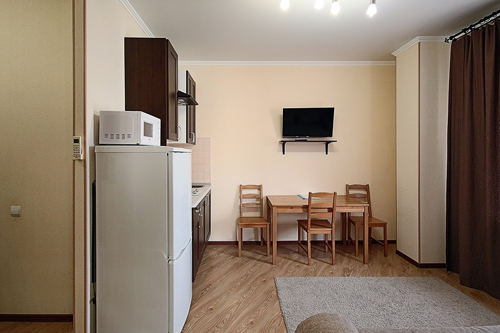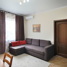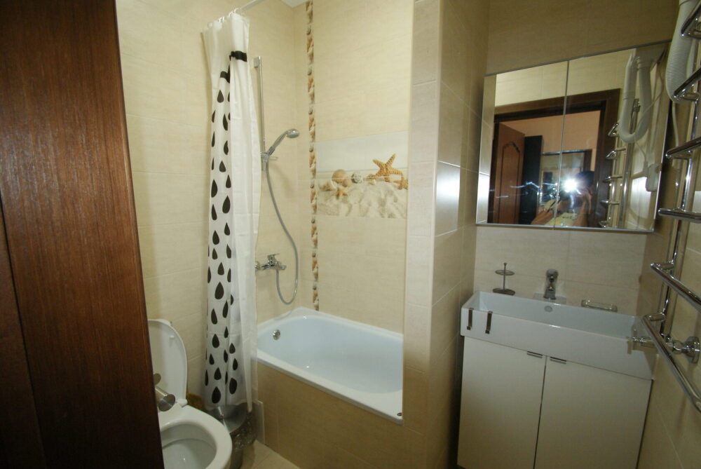 Одна комната - гостиная-кухня с кухонным уголком, газовой плитой, двуспальным раскладным диваном-кроватью. Другая комната - спальня с двухъярусной кроватью. Комнаты проходные. В квартире имеются: телевизоры в каждой комнате, сплит-системы в каждой комнате, набор посуды, большой холодильник, санузел с ванной. Имеется сушилка для белья. Номер оборудован сетью Wi-Fi.