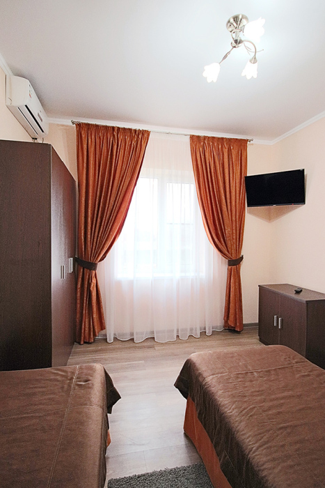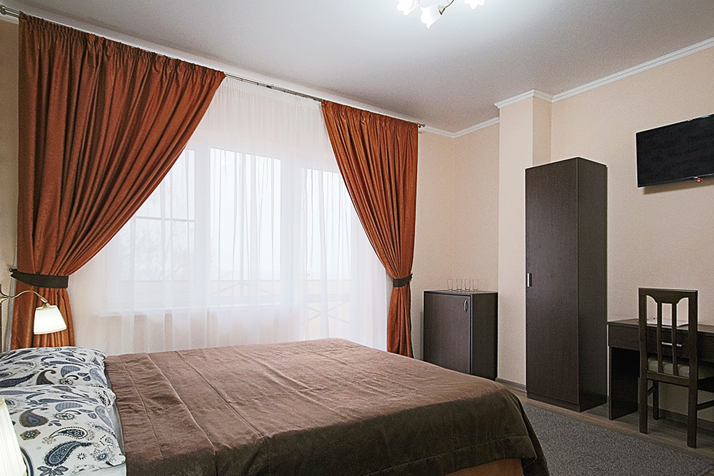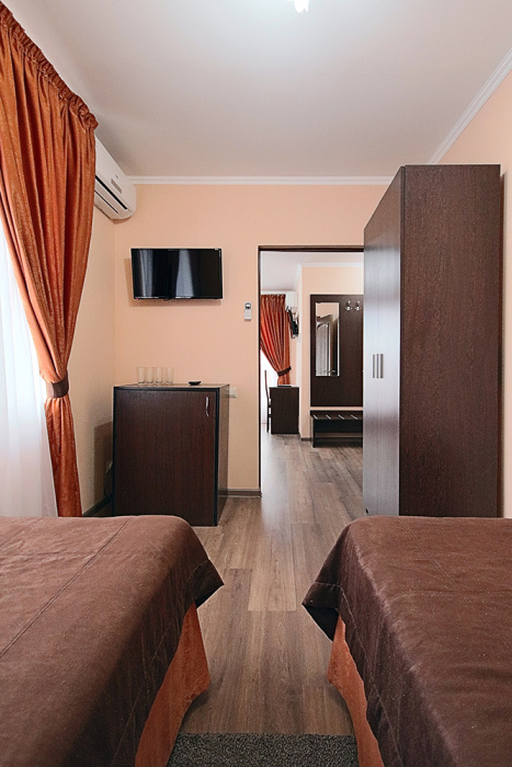 Это замечательный двухместный номер на 1 этаже морского корпуса. В номере две односпальные кровати либо одна двуспальная. Номер оснащен холодильником, телевизором, сплит-системой. Имеется сушилка для белья.
