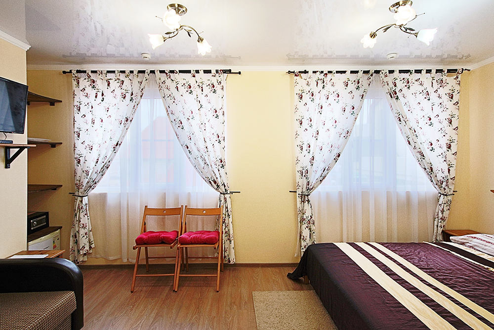 Номер оснащен холодильником, телевизором, сплит-системой. Имеется сейф и фен. На балконе есть сушилка для белья.Номера расположены на 3 и 4 этажах.