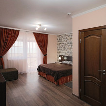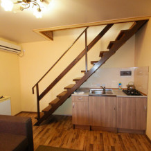Это комфортные двухкомнатные номера для размещения 4 - 5 человек. Номера расположены на втором и третьем этажах.