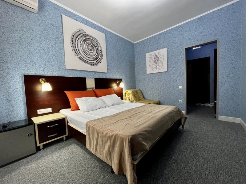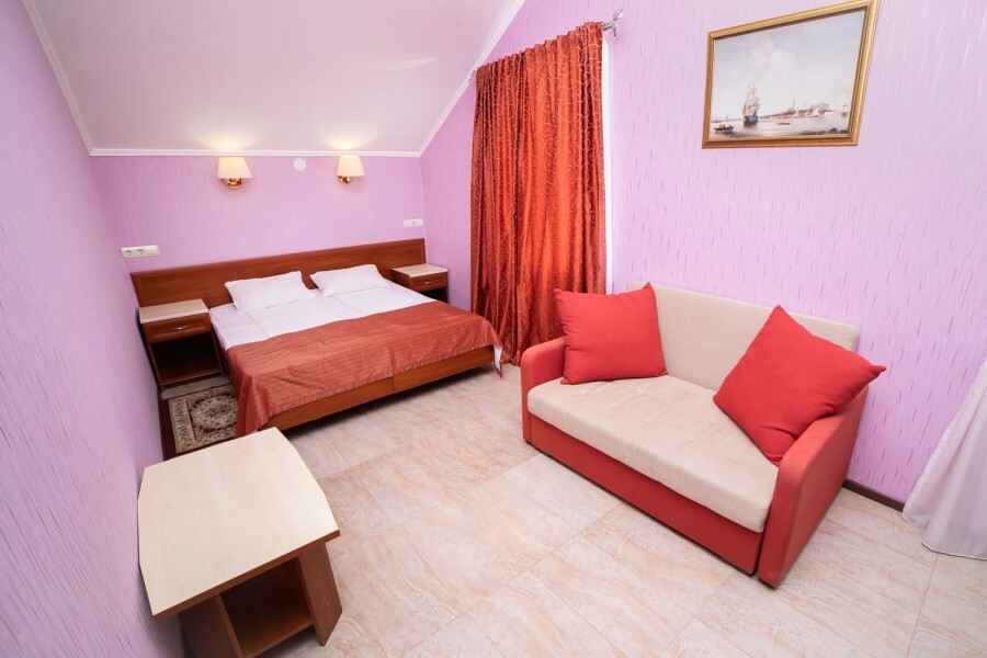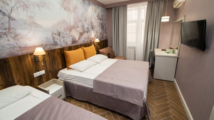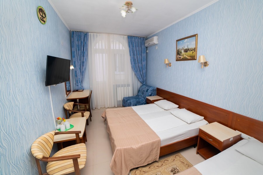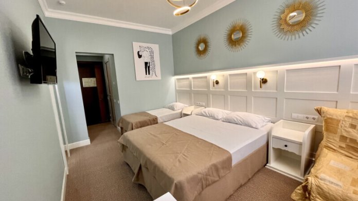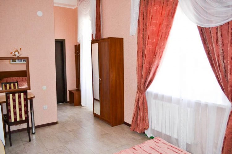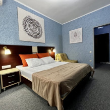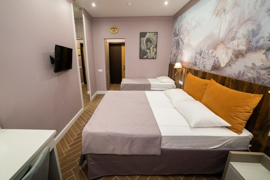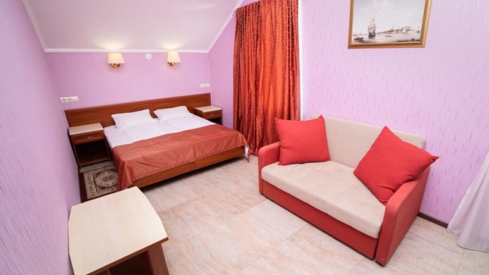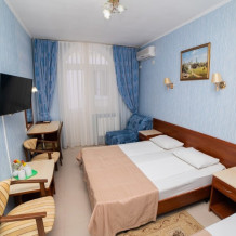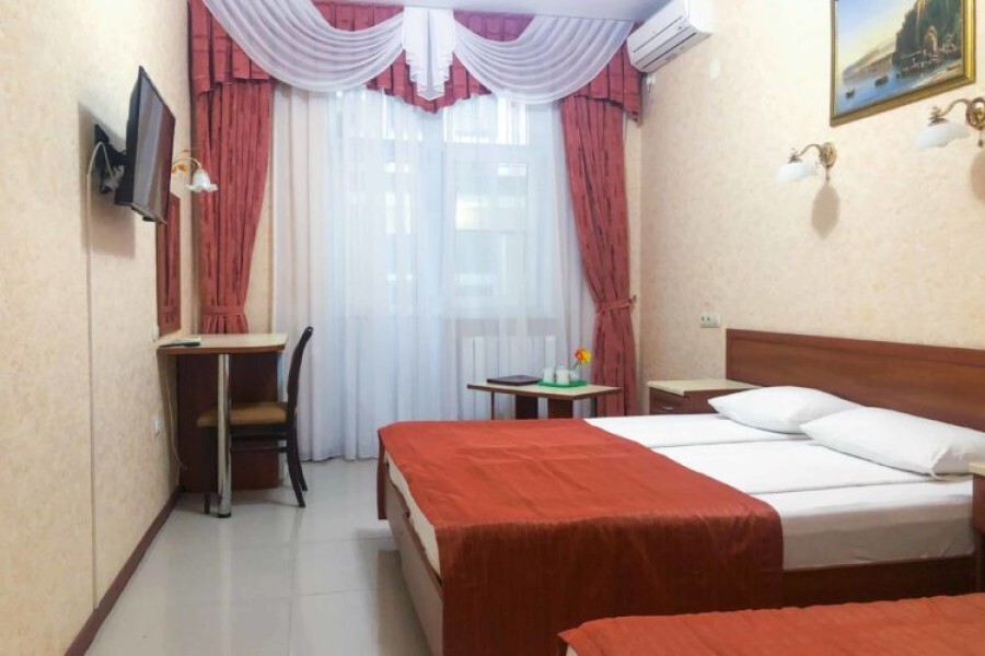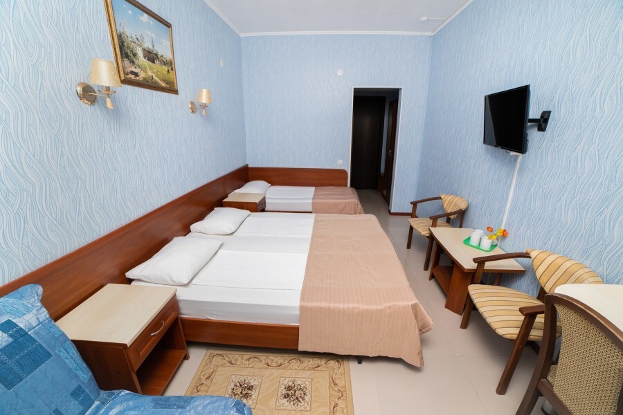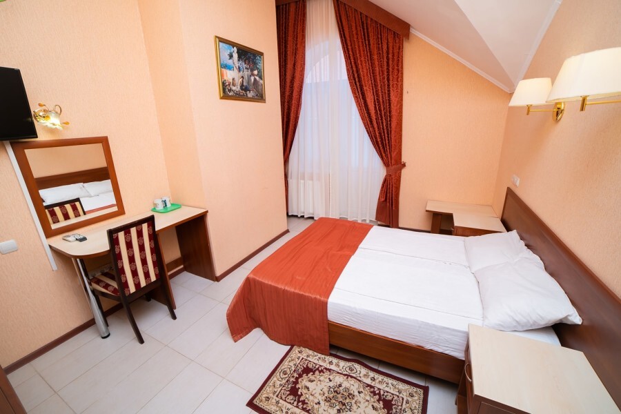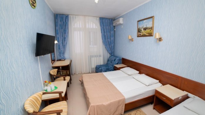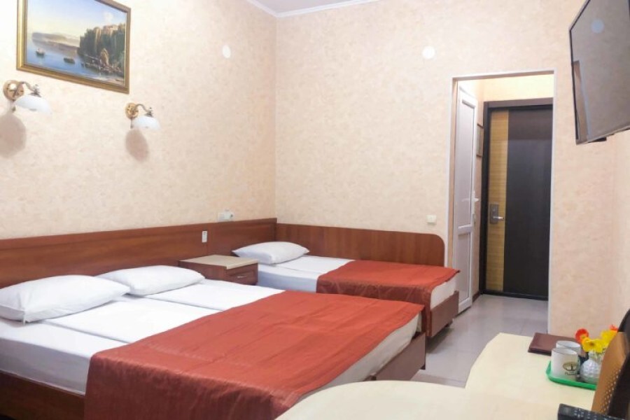 Есть номера как с 1 двуспальной, так и с 2-мя односпальными кроватями.