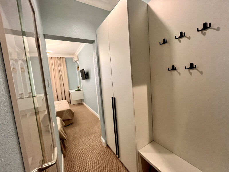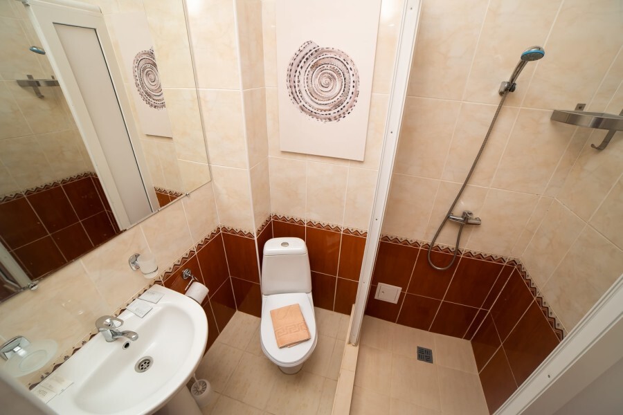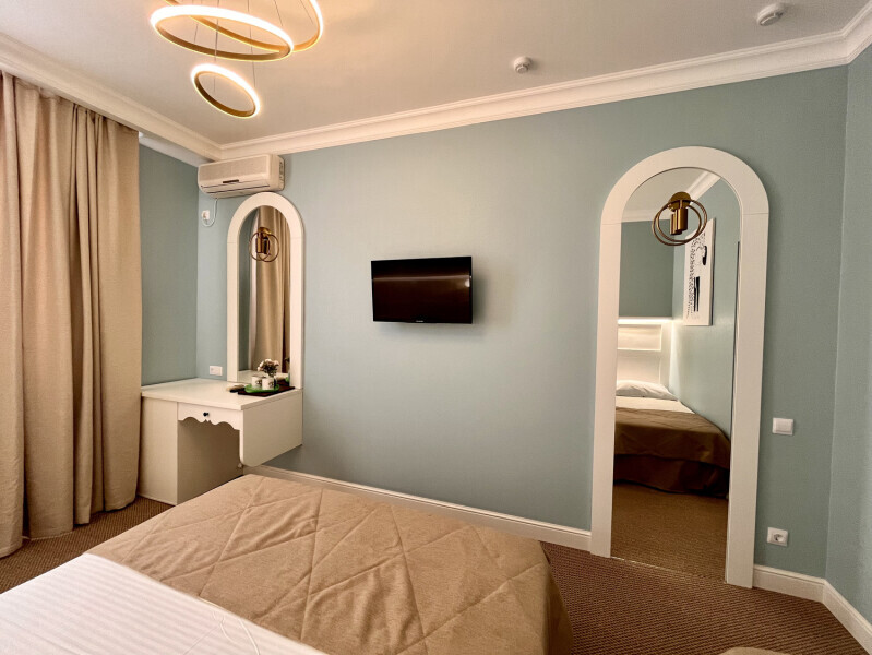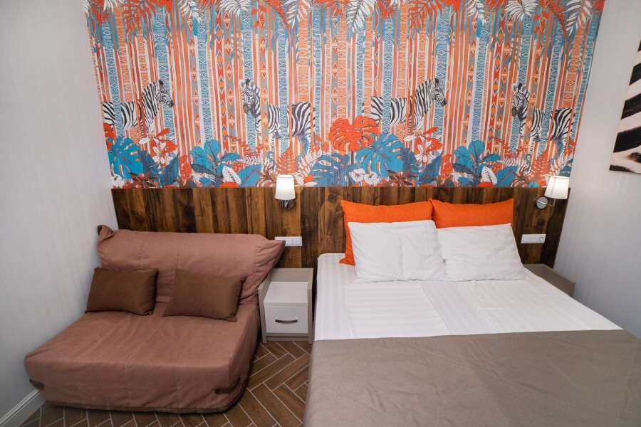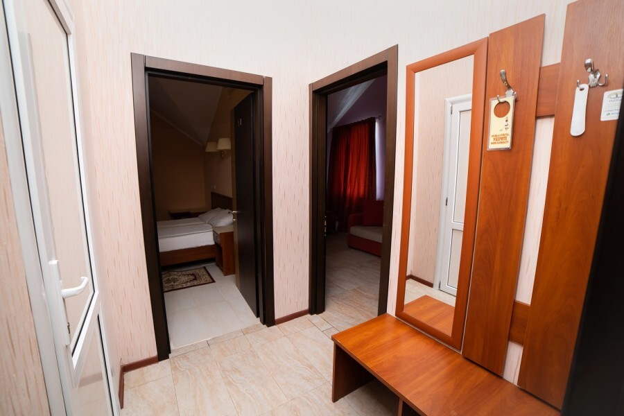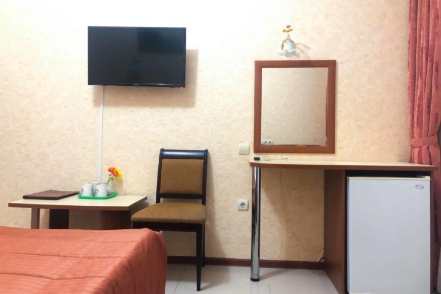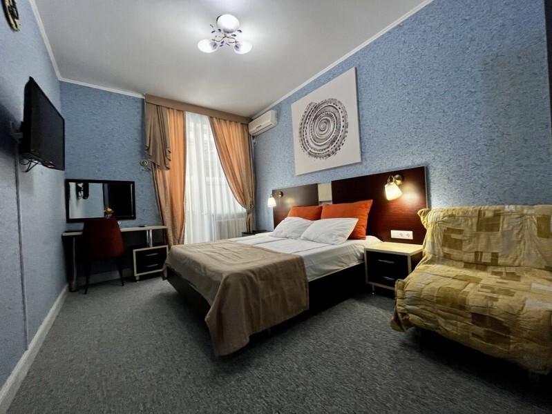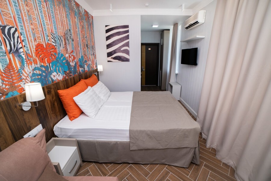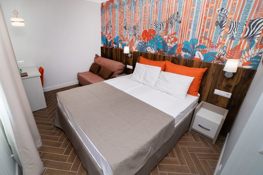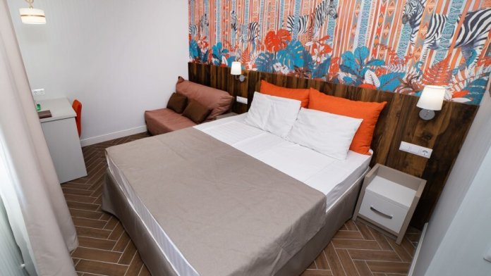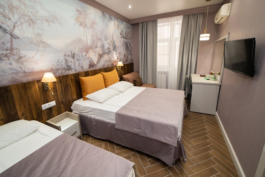 Есть номера как с 1 двуспальной, так и с 2-мя односпальными кроватями.