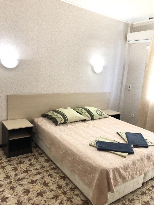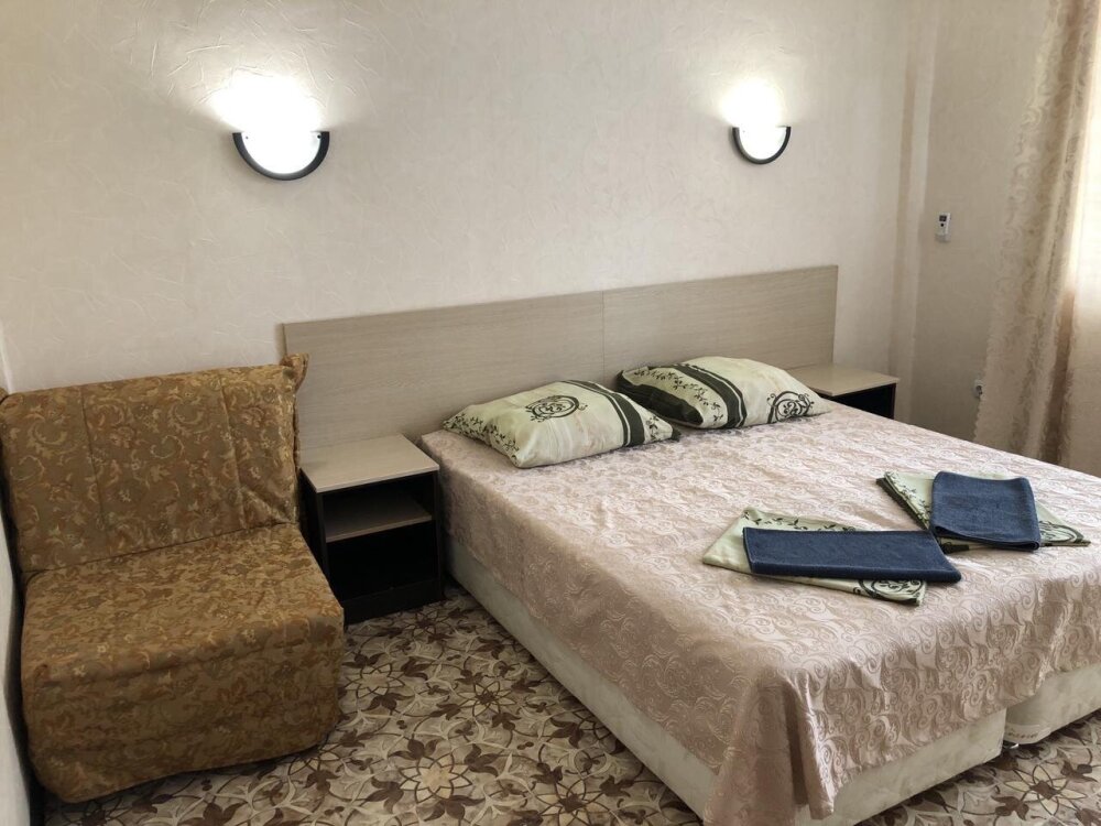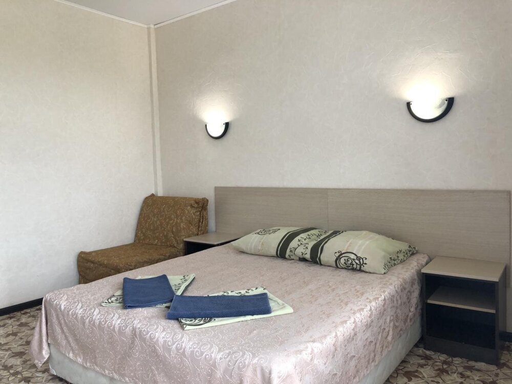 Отель представлен трёхэтажным корпусом с комфортабельными номерами на 2-3 человека. Большие панорамные окна, придают номерам больше света, а балконы больше простора и свежего воздуха. Зелёный вьющийся плющ, красиво укрыл весь первый этаж здания и плавно тянется вверх. Это придаёт летний контраст отелю и приятно радует глаза на отдыхе.