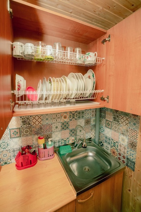 Для проживания предлагаем размещение в комфортабельных номерах (от 2 до 6 мест), где есть все необходимое для отдыха и на каждый номер (или в самом номере, см. описание) идет своя кухня для самостоятельного приготовления пищи.