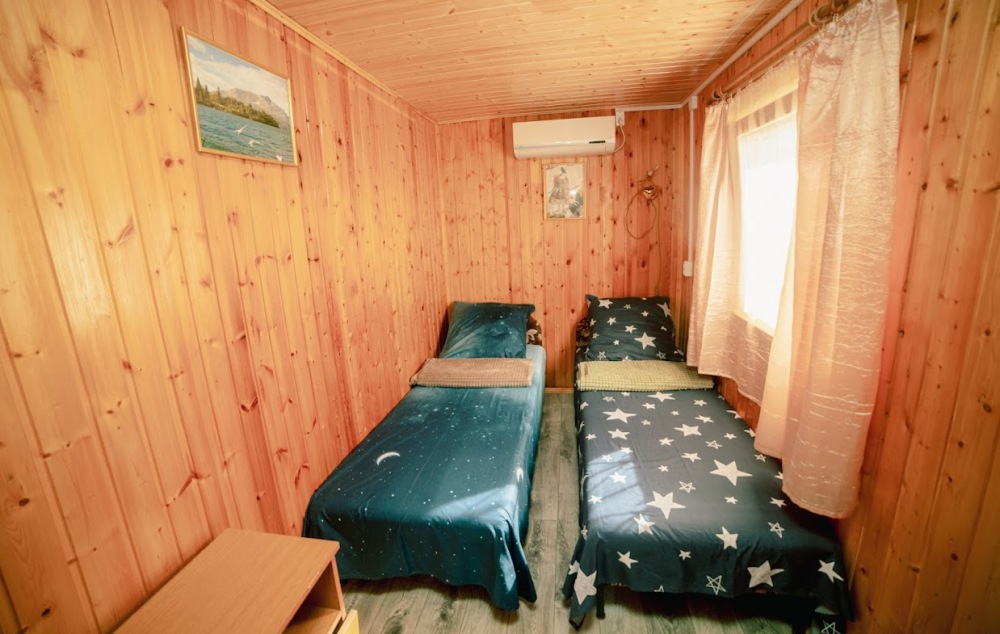 В номере телевизор, холодильник, система кондиционирования, стиральная машина, душ, кухня, чайник, четыре односпальные кровати, прикроватные тумбочки, шкаф, стол, стулья.