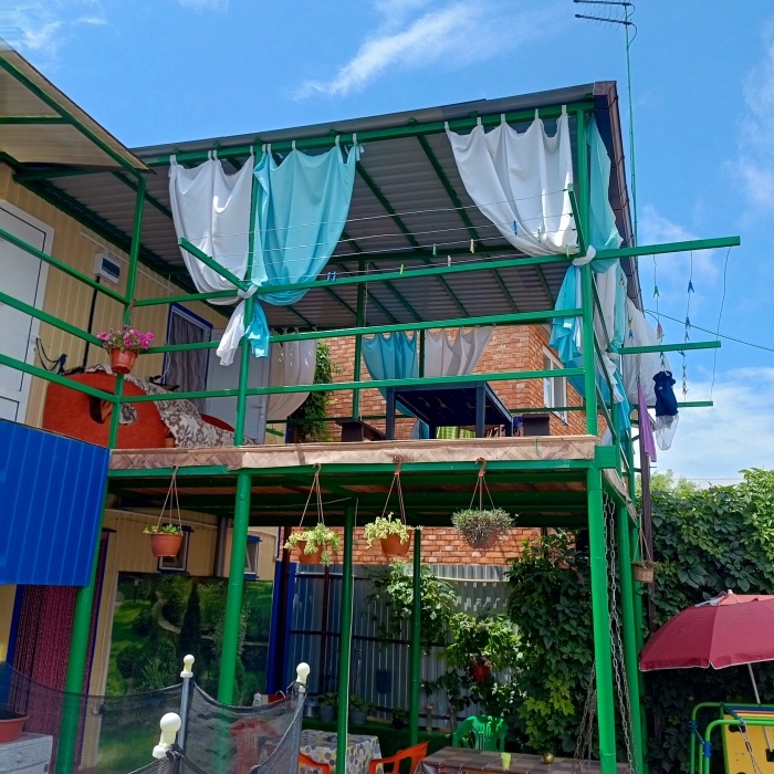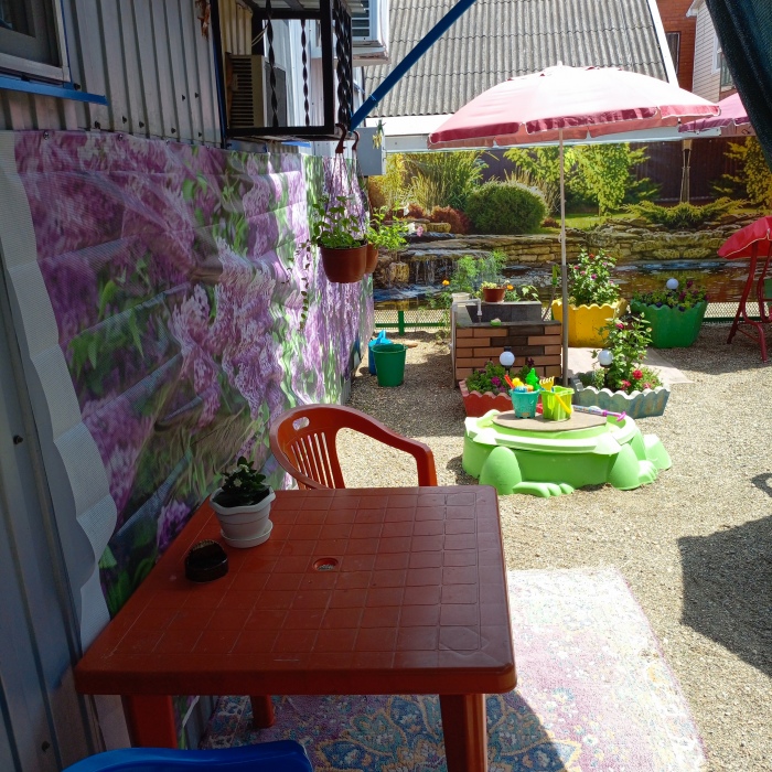 Доброжелательная атмосфера, уютный тихий дворик, вдали от проходной дороги и проезжей части. Во дворе вы можете воспользоваться мангалом для приготовление шашлыков. Парковка автомобилей охраняемая, бесплатная, расположена на территории кооператива в 400 метрах от дома.