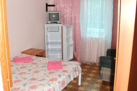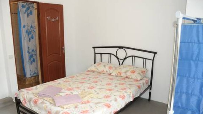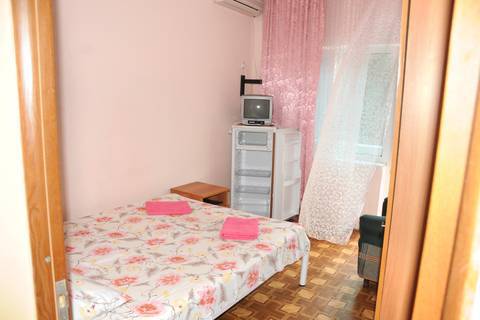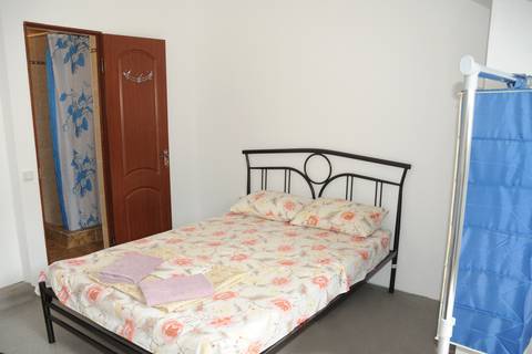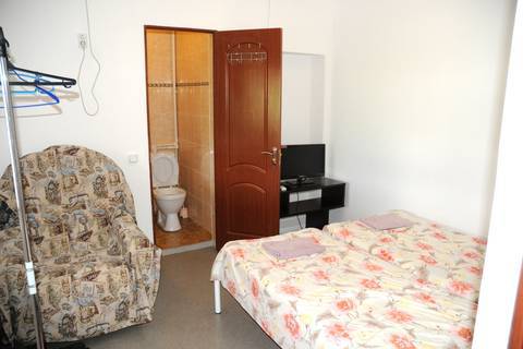 Номер для двоих: двуспальная кровать, балкон, кондиционер, телевизор, холодильник. Душ, туалет на две комнаты. На этаже имеется кухня на 4 комнаты, посуда для приготовления пищи.