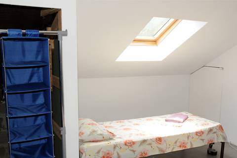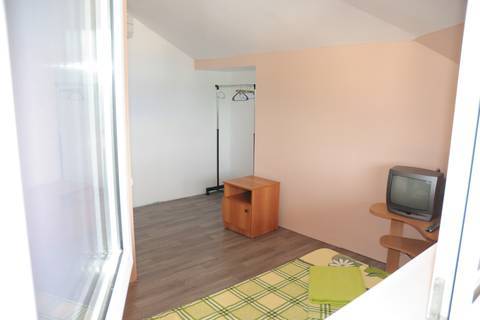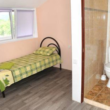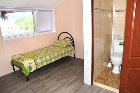 Номер расположен на мансарде. В номере: душ, туалет, кондиционер, телевизор, односпальная кровать, холодильник в коридоре, большая лоджия на 4 комнаты.
