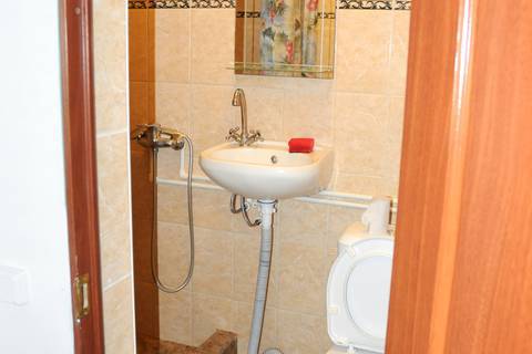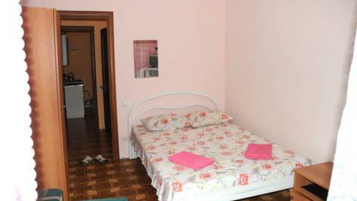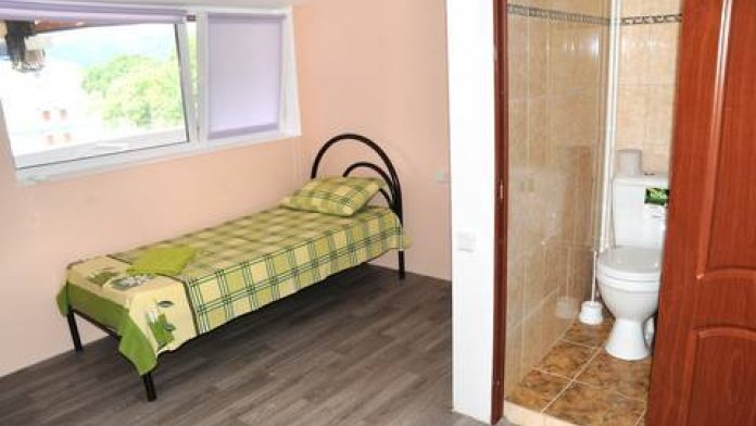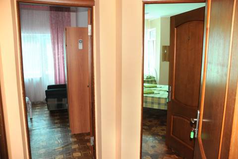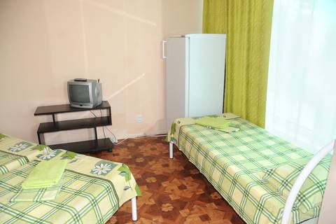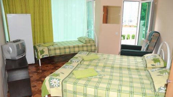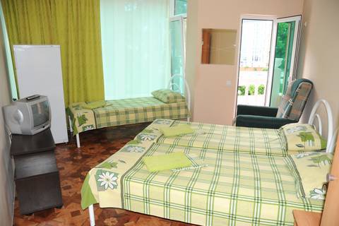 Двух комнатный номер: душ, туалет, комнаты раздельные, в каждой комнате балкон, холодильник, телевизор, кондиционер, кресло-кровать, в одной комнате двуспальная кровать, в другой три односпальных. КУХНЯ на два таких номера.