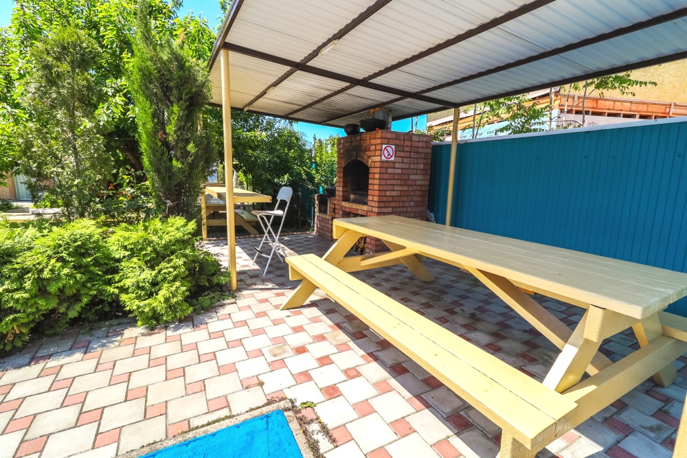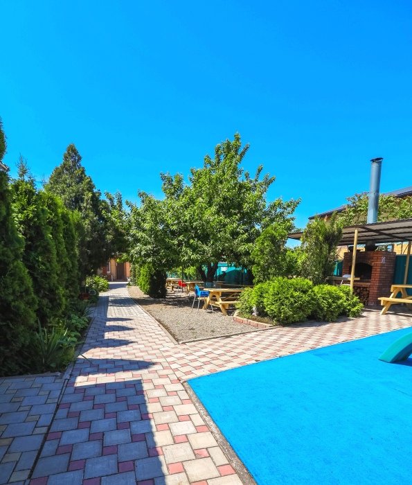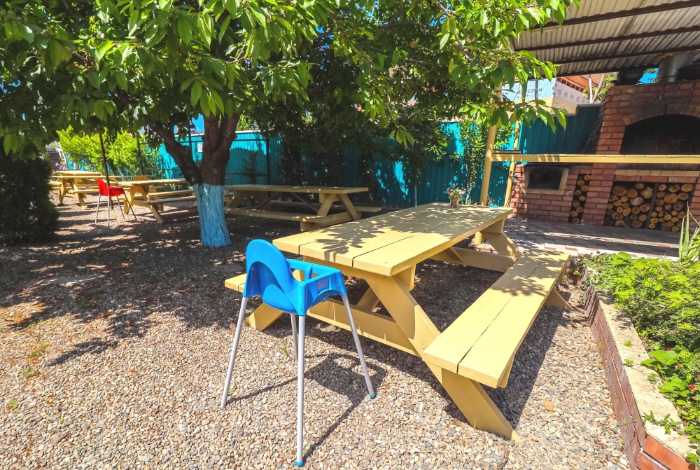 Зона отдыха представляет собой территорию, озелененную фруктовыми деревьями и виноградными беседками. Здесь есть столики для приятного времяпровождения наших гостей. Так же к этой территории примыкает шашлычная зона, включающую в себя мангал и казан, предоставляемые для наших гостей бесплатно, в любое удобное для Вас время.
