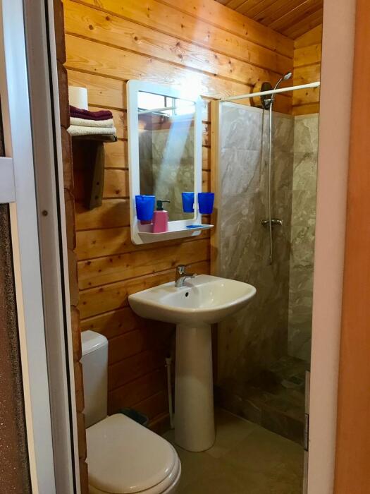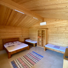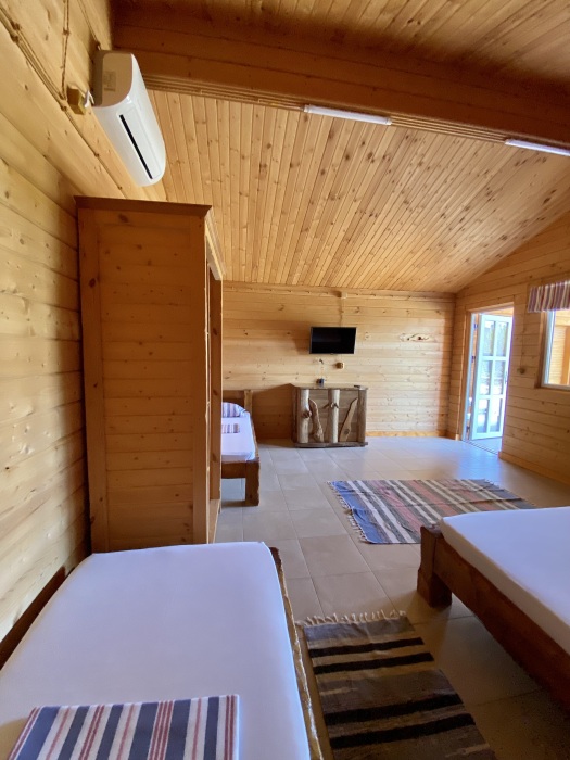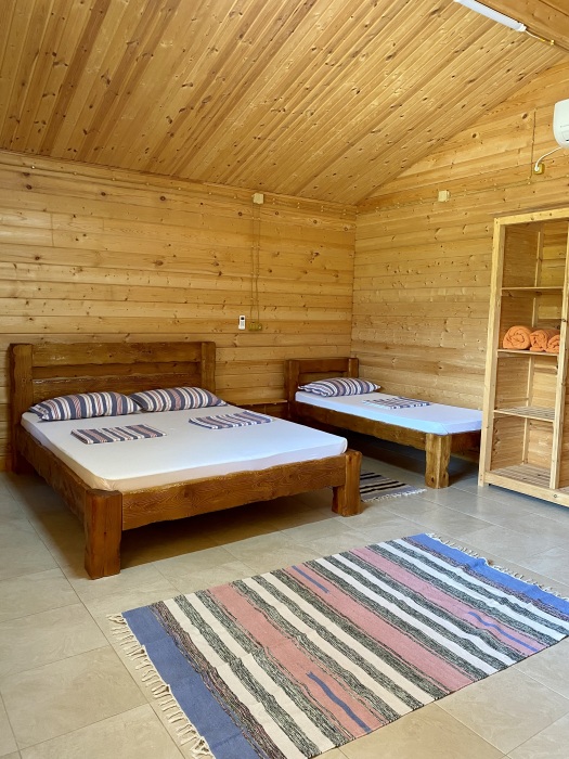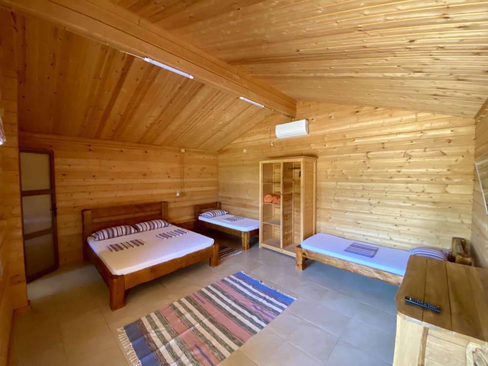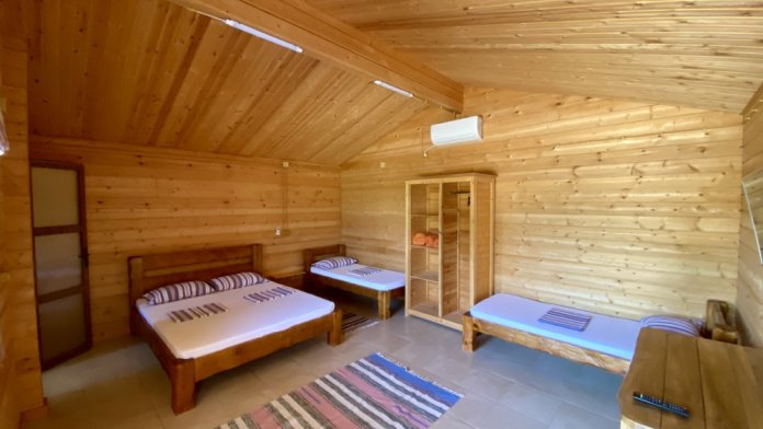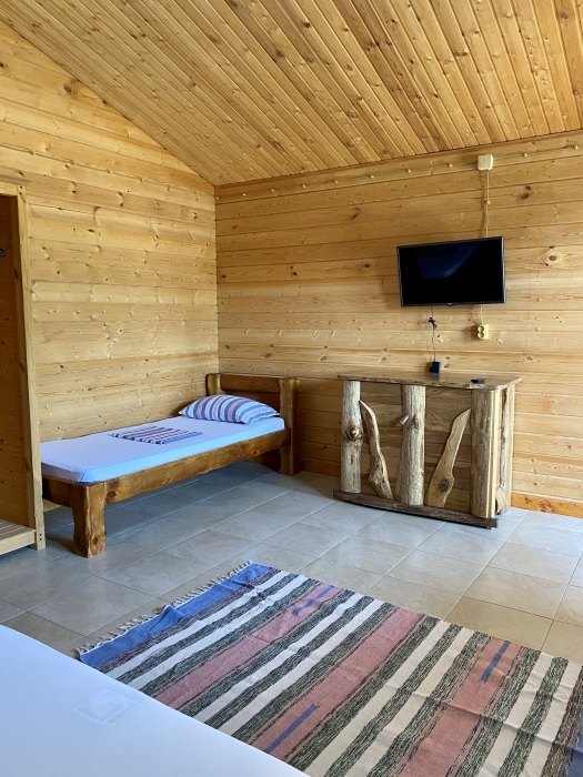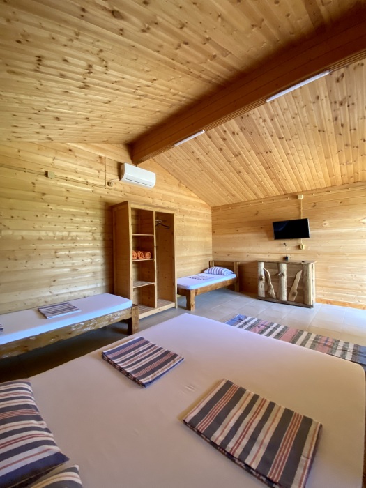 Для ценителей комфортного отдыха предлагаются отдельные домики, выполненные из бруса и укомплектованные всей необходимой бытовой техникой и удобной мебелью.