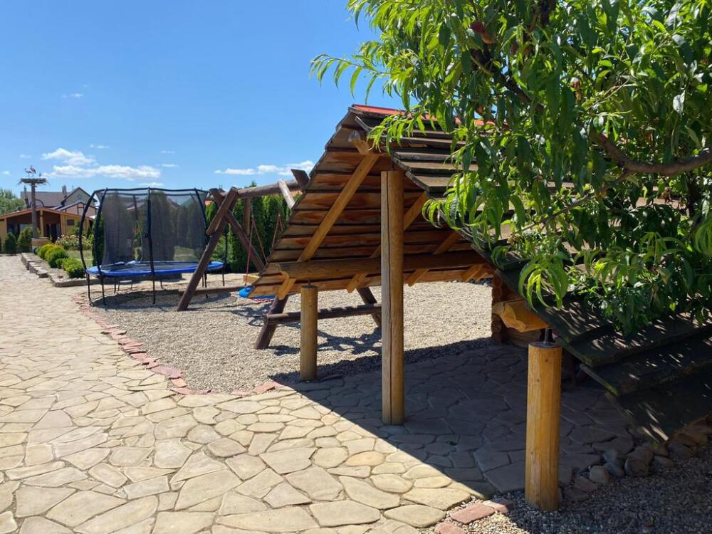 Любители шашлыка могут воспользоваться мангалом, а пока взрослые заняты жаркой мяса - дети могут проводить весело время на игровой площадке.