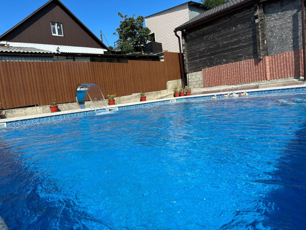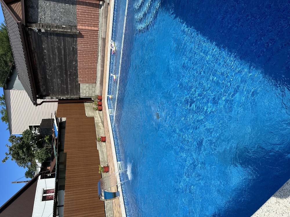 На территории имеется шашлычный дворик, столики, где можно отлично провести время, беседки, просторный бассейн, парковка.