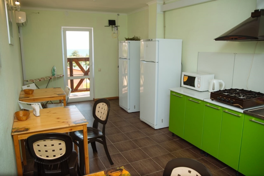 Понравилось, как дома, только у моря! На каждом этаже есть общая кухня, внизу большая беседка с мангальной зоной и крытая детская площадка рядом. Есть своя парковка, территория огорожена. В номерах есть всё необходимое: постельное белье и полотенца.