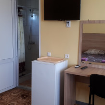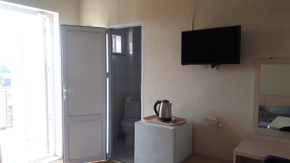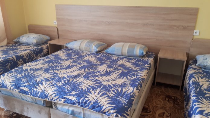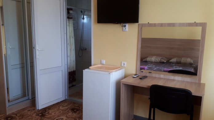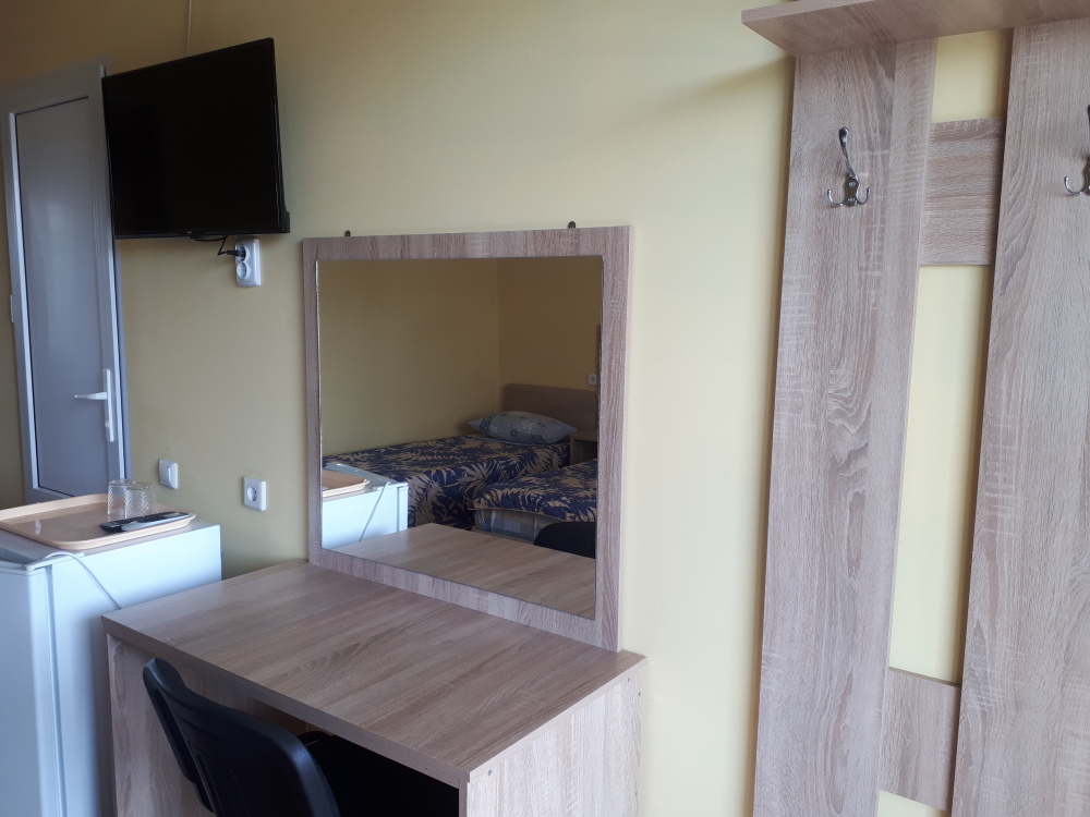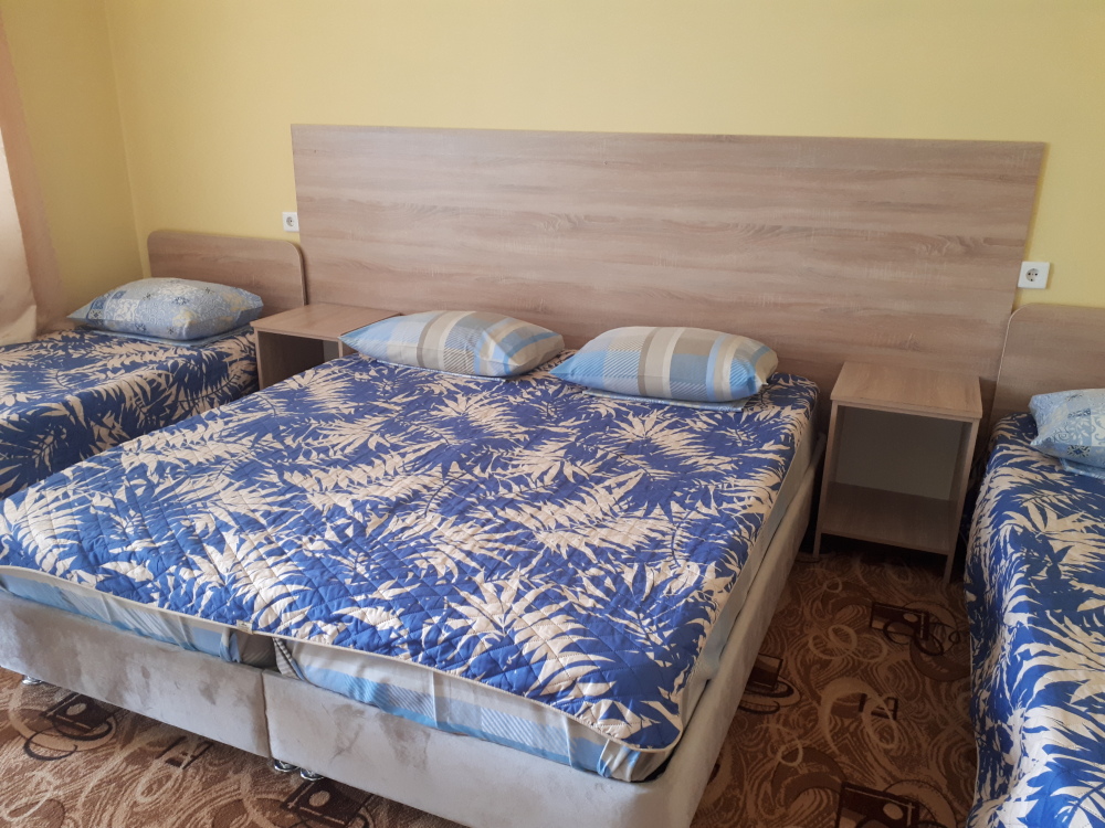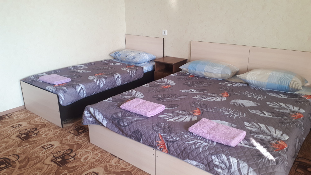 В номерах современный ремонт и новая мебель. В каждом номере есть холодильник, сплит-система, свой санузел, душевая и гардеробная, телевизор с цифровым телевидением, комфортные спальные места. Вместимость номера до 5 человек. Дополнительные места предоставляются по требованию.