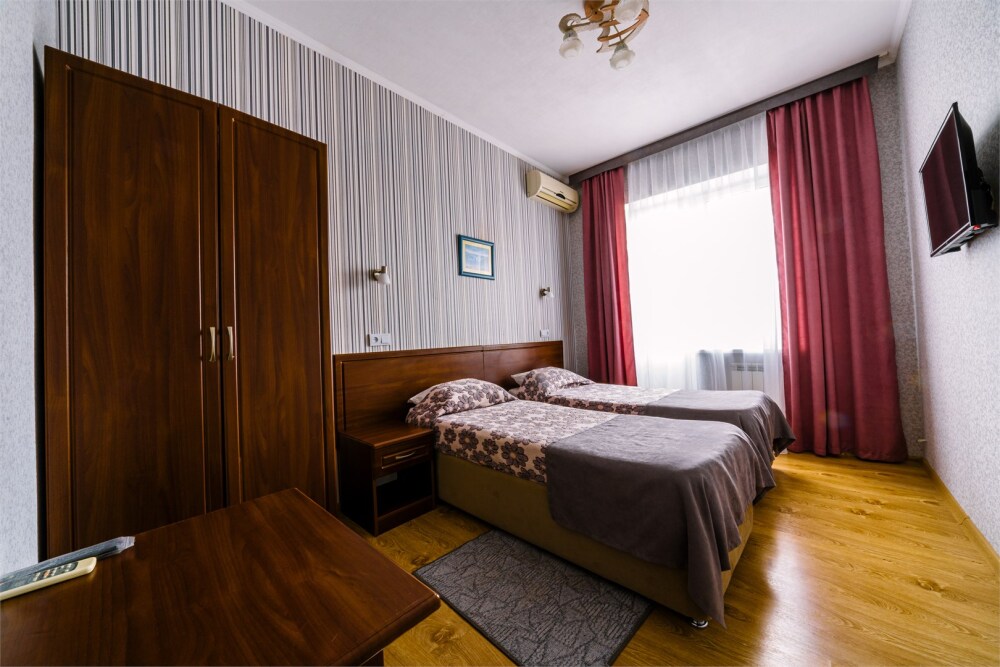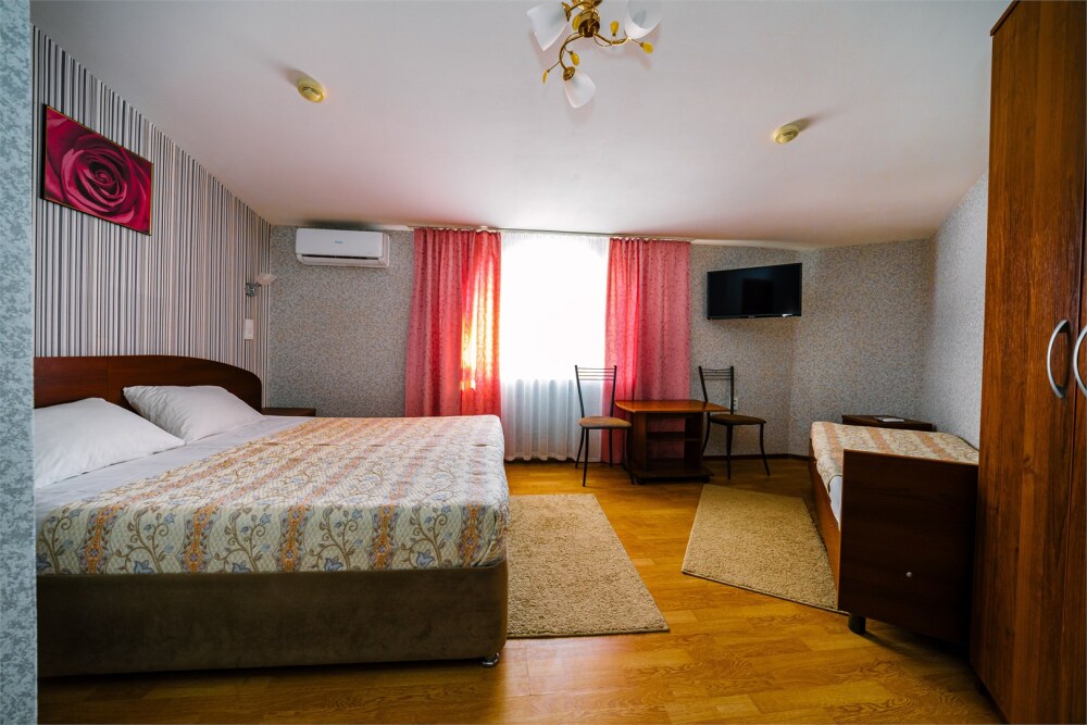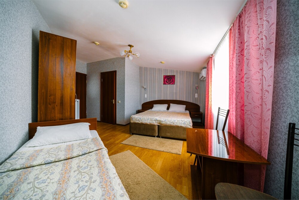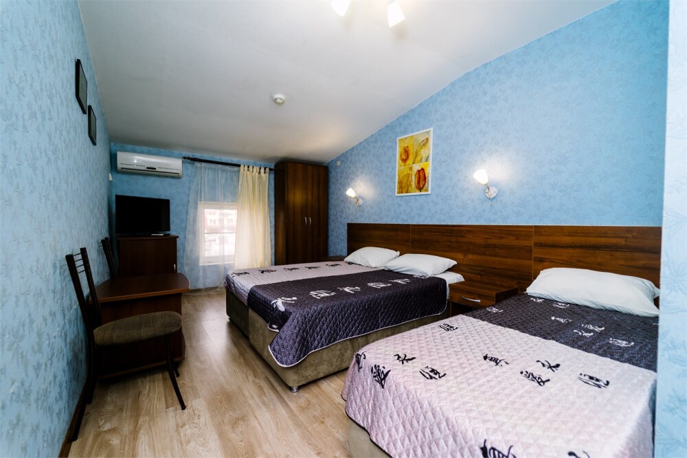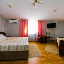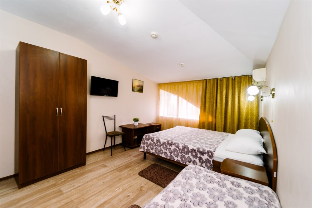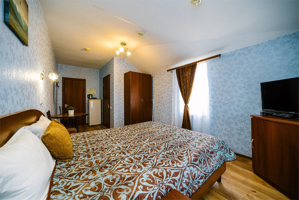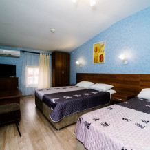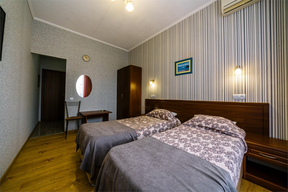 Комфортабельные уютные номера первой категории (все номера снабжены сплит системами, холодильниками, ТВ, душевыми кабинами или ванной), предназначены для семейного отдыха и позволят ощутить себя в атмосфере домашней обстановки.