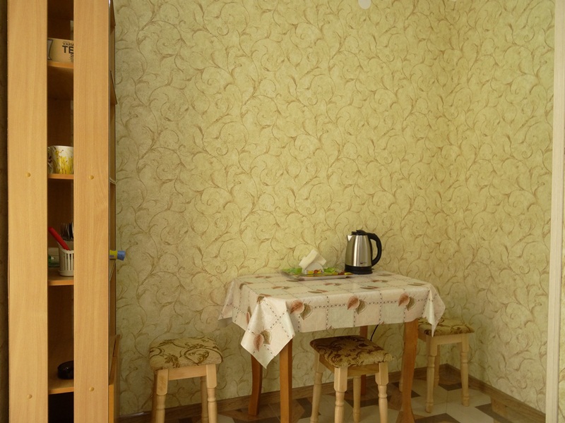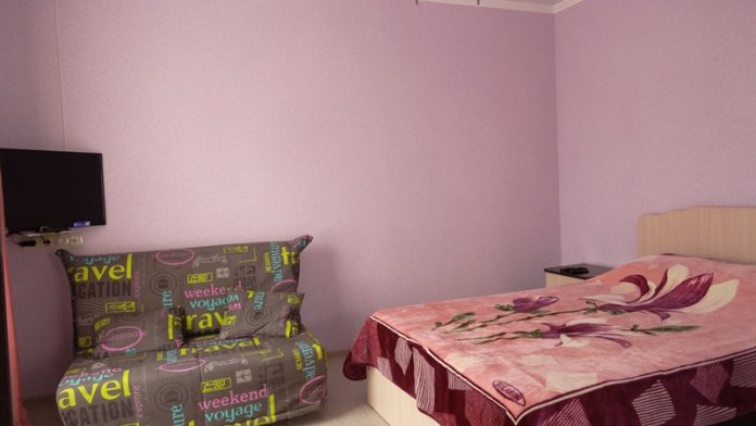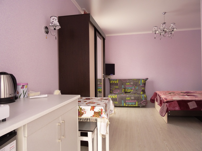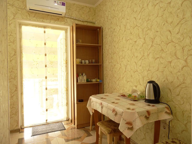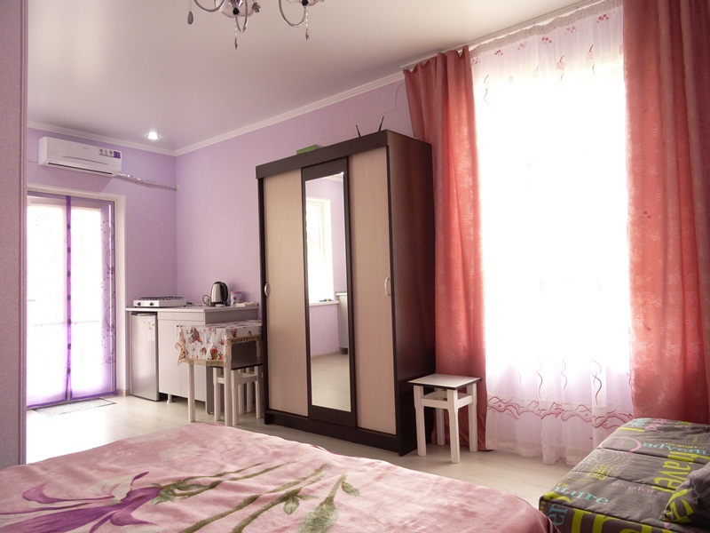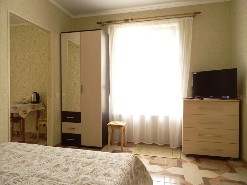 Гостевой дом предлагает семейный отдых в комфортабельных 4-местных номерах, в каждом из которых своя мини-кухня, цифровое телевидение, сплит-система, санузел с душем, покрывало для пляжа. У каждого номера есть столик для отдыха на террасе, рядом со входом. Работает Wi-Fi.