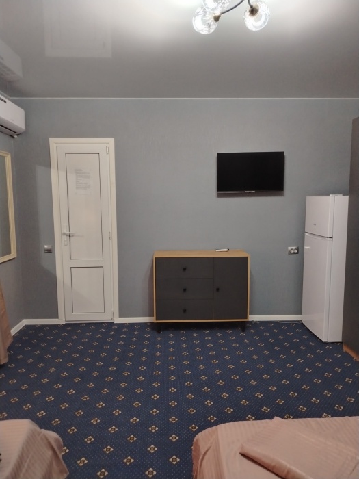 В спальня двухспальные кровати 140×200,диван, тумбочки, вешалки, комоды, сплит-системы.