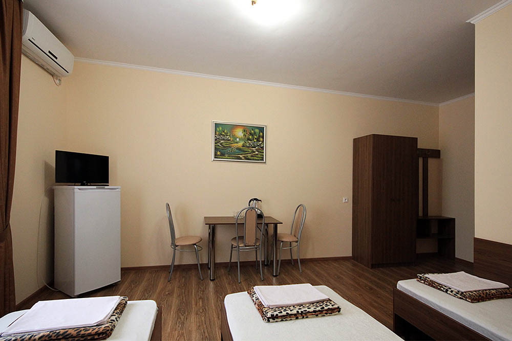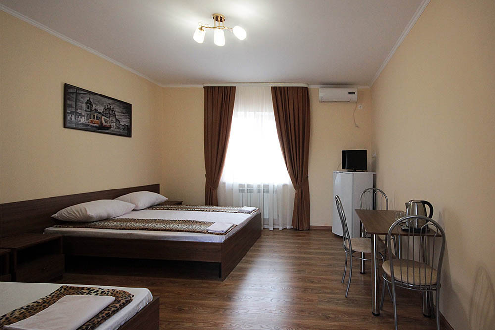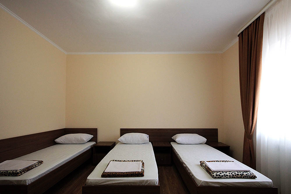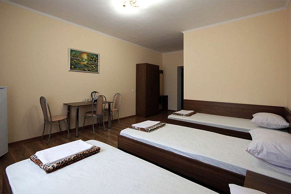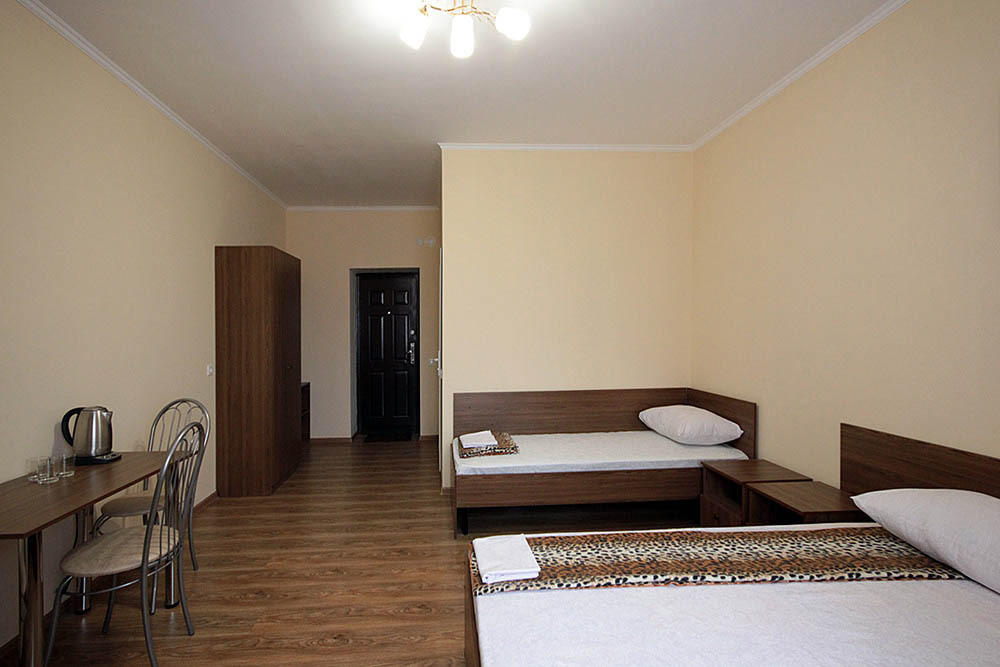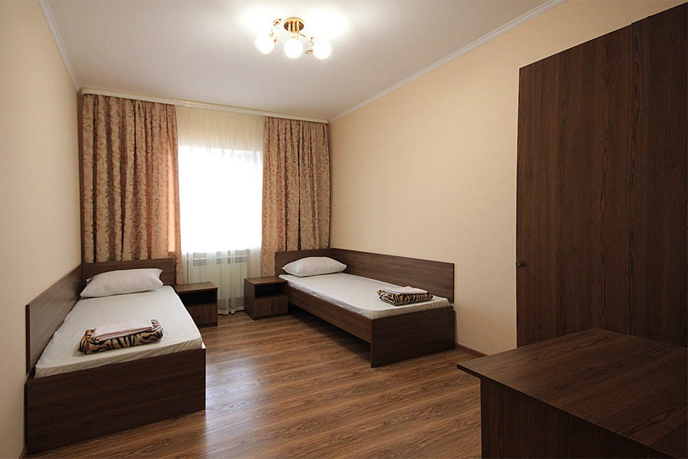 Просторные номера, новая мебель: столы, стулья, кровати, шкафы. Всегда свежее белье, необходимая бытовая техника: холодильники, чайники, кабельное ТВ, WIFI интернет. В каждом номере собственный санузел с душевой кабинкой. А для поддержания оптимального микроклимата установлены независимые сплит системы кондиционирования воздуха.