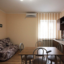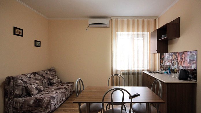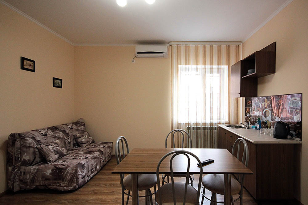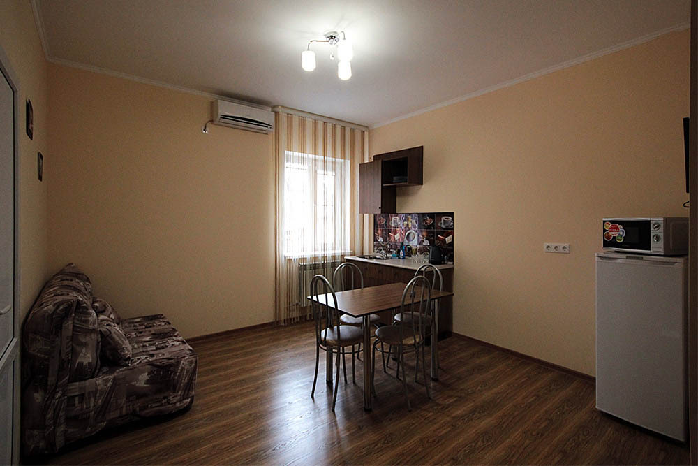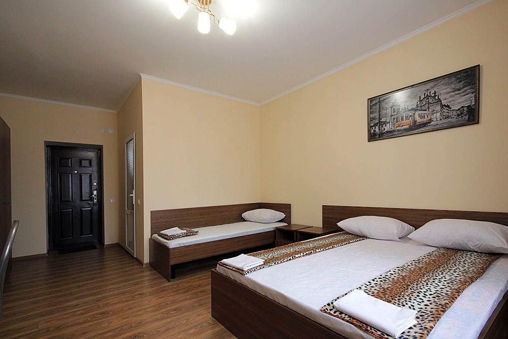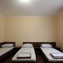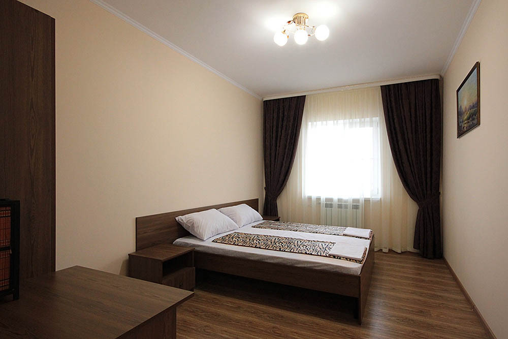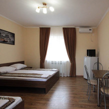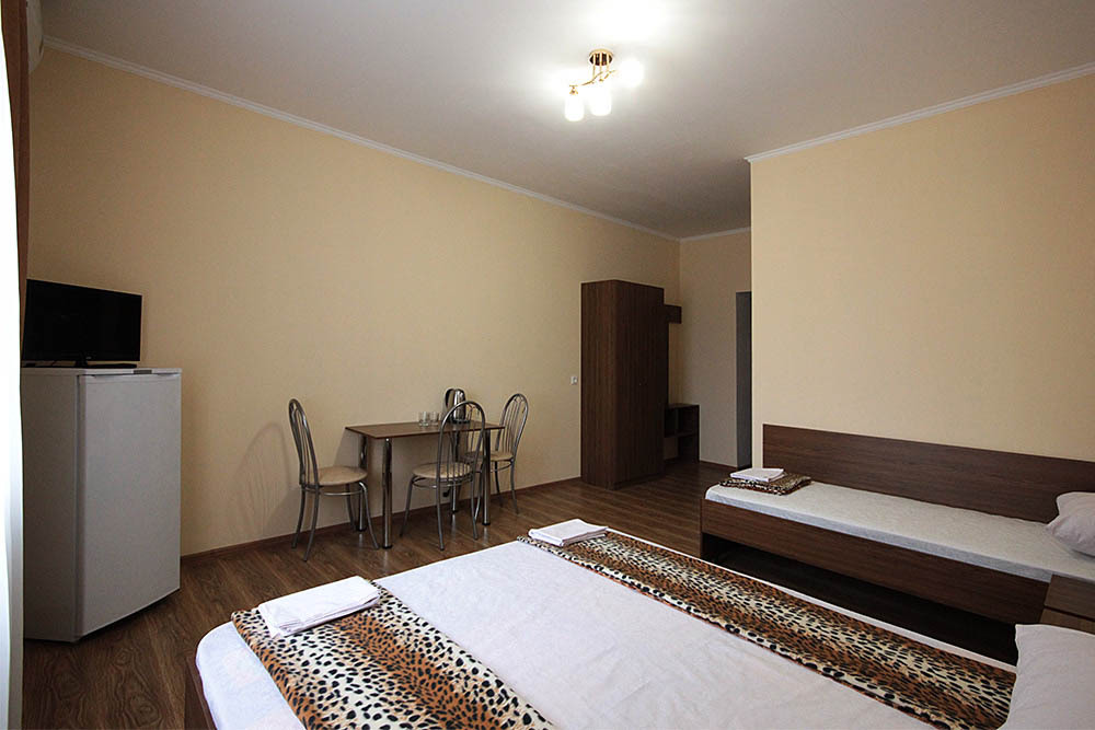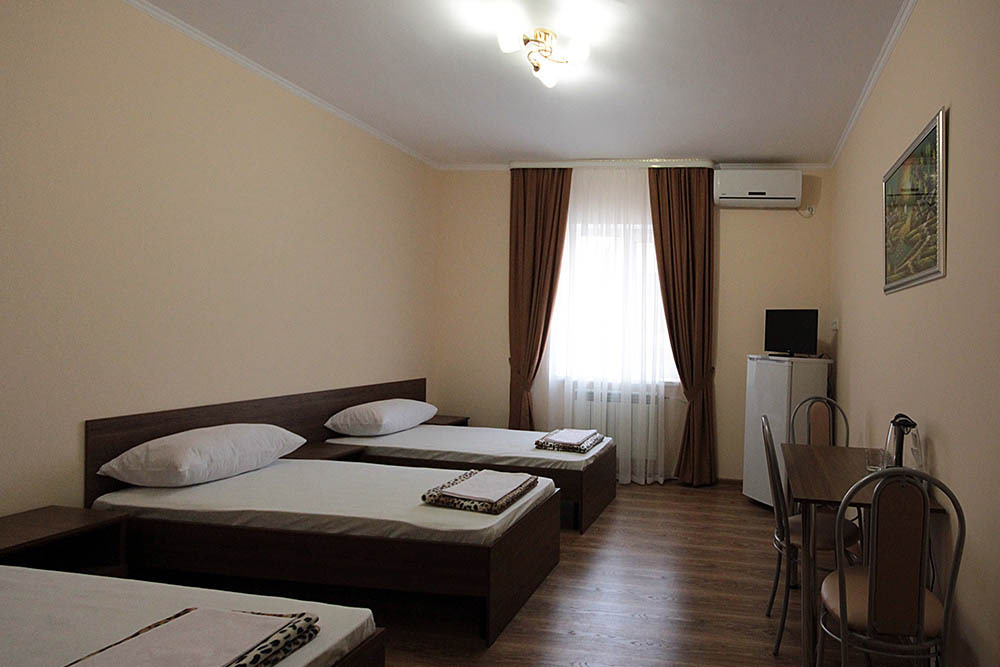 Просторные номера, новая мебель: столы, стулья, кровати, шкафы. Всегда свежее белье, необходимая бытовая техника: холодильники, чайники, кабельное ТВ, WIFI интернет. В каждом номере собственный санузел с душевой кабинкой. А для поддержания оптимального микроклимата установлены независимые сплит системы кондиционирования воздуха.