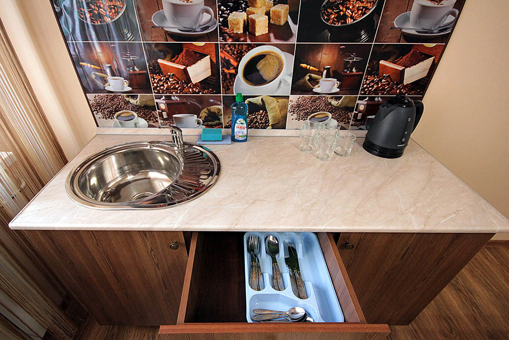 Шесть столов по четыре места, две плиты, две раковины, микроволновка, мультиварка, посуда и все необходимое для приготовления и приема пищи в Вашем распоряжении. Так же на кухне установлена полноценная барбекюшница с мощной вытяжкой. Вы можете приготовить шашлык и прочие вкусности на углях в комфорте и без лишних хлопот.