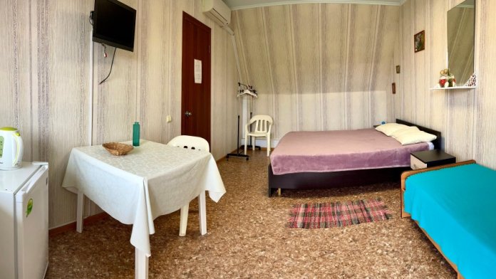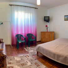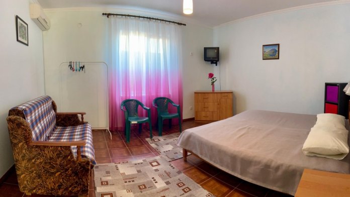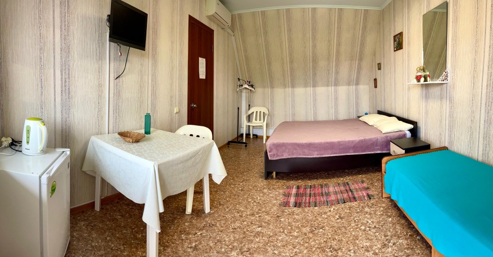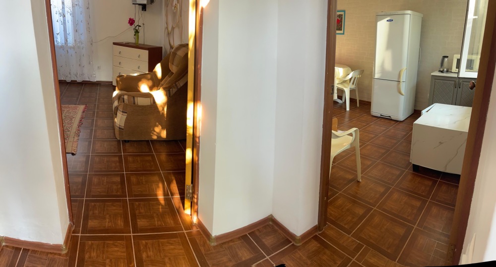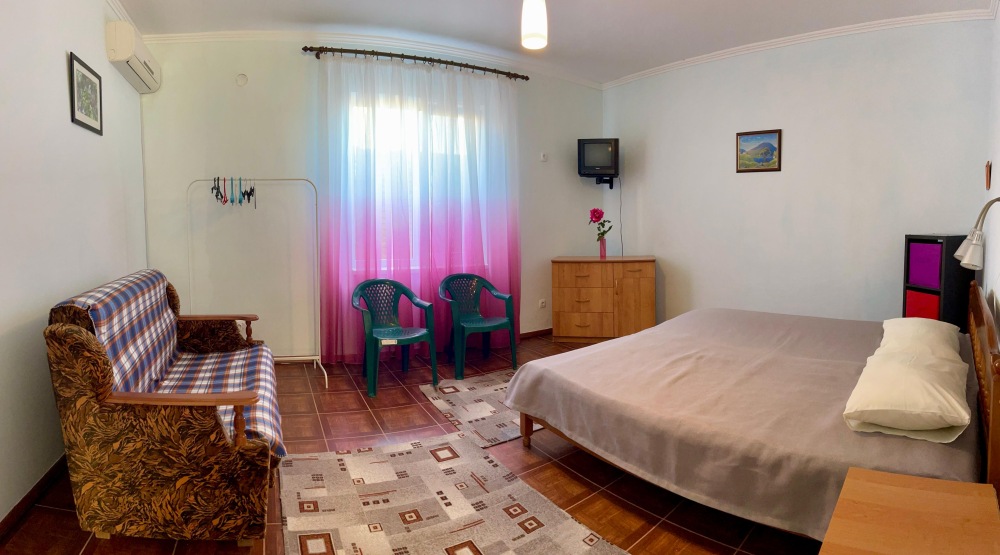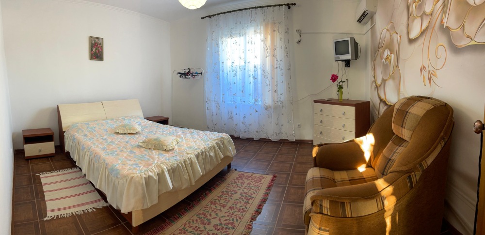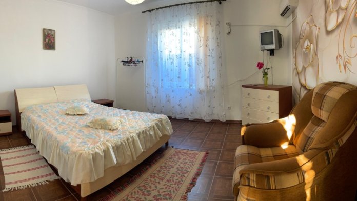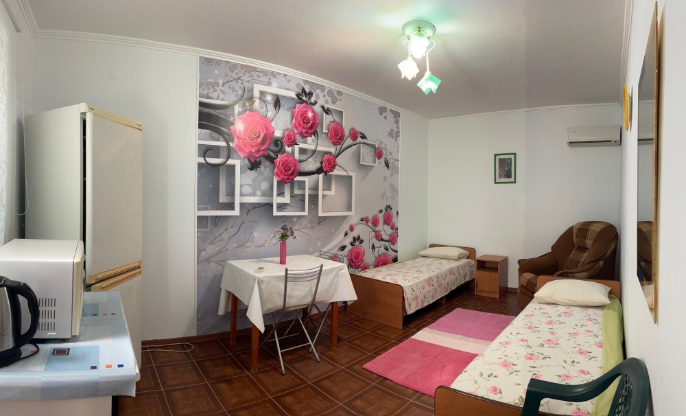 На первом этаже - комнаты повышенной комфортности. На втором этаже расположены комнаты, куда можно подняться по пологой лестнице, ведущей прямо из сада. Кроме комнат на втором этаже расположена отдельная комната для приготовления пищи, стиральная машина (за дополнительную плату), утюг. В садовой беседке Вы сможете готовить на мангале и баловать себя чаепитием на свежем воздухе.