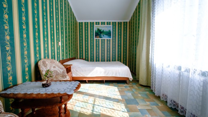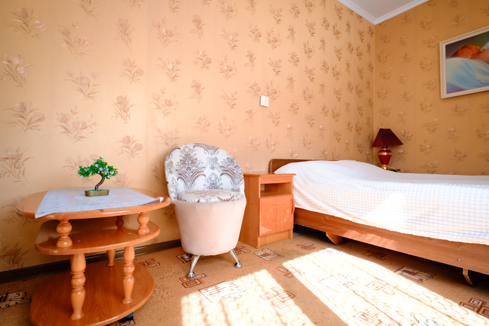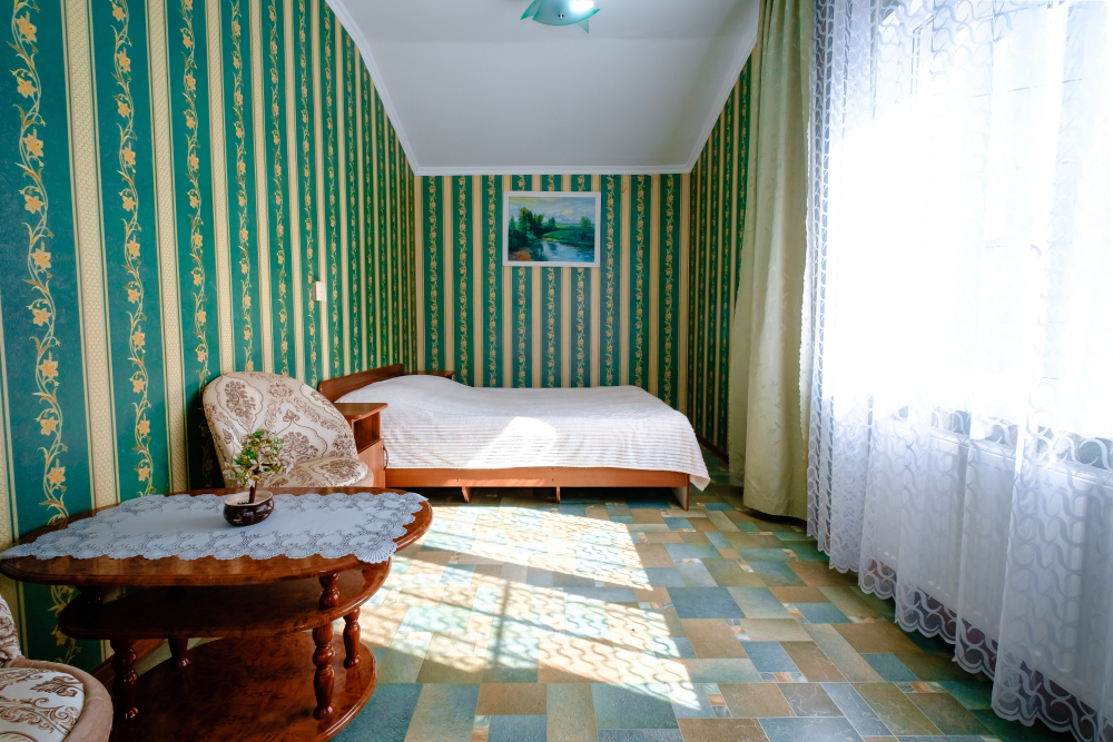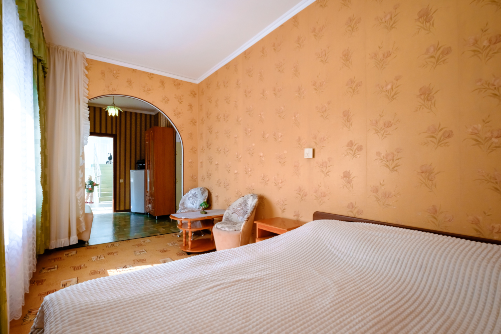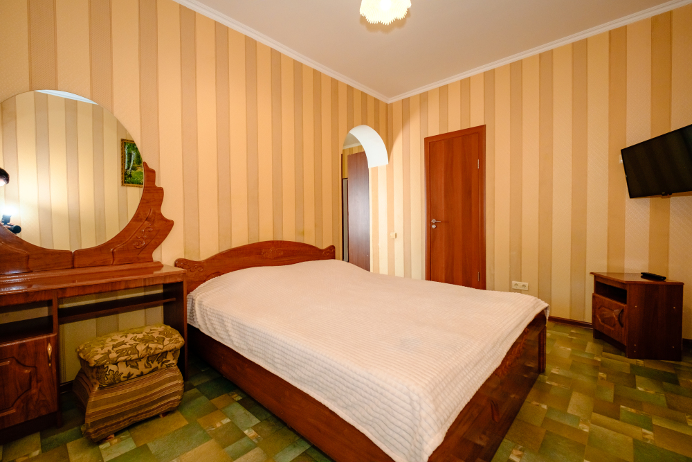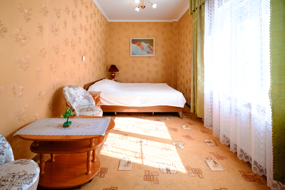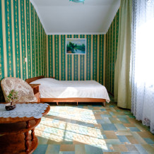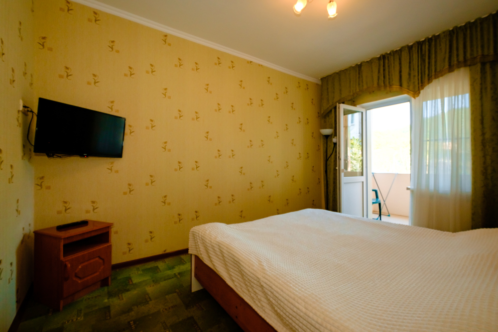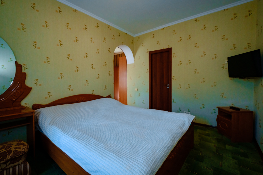 В номере имеются все необходимое для комфортного проживания. Кровать двухспальная шириной 160 см. Идеально подойдет для семейной пары или семьи с ребенком до 5-ти лет.