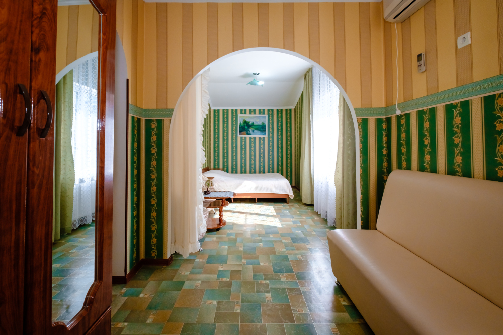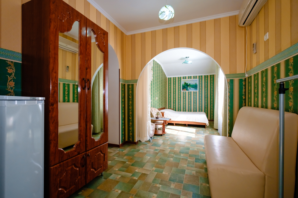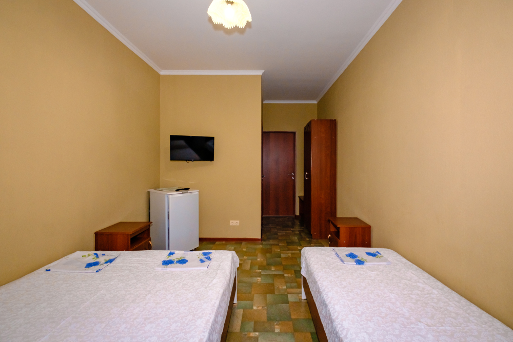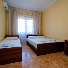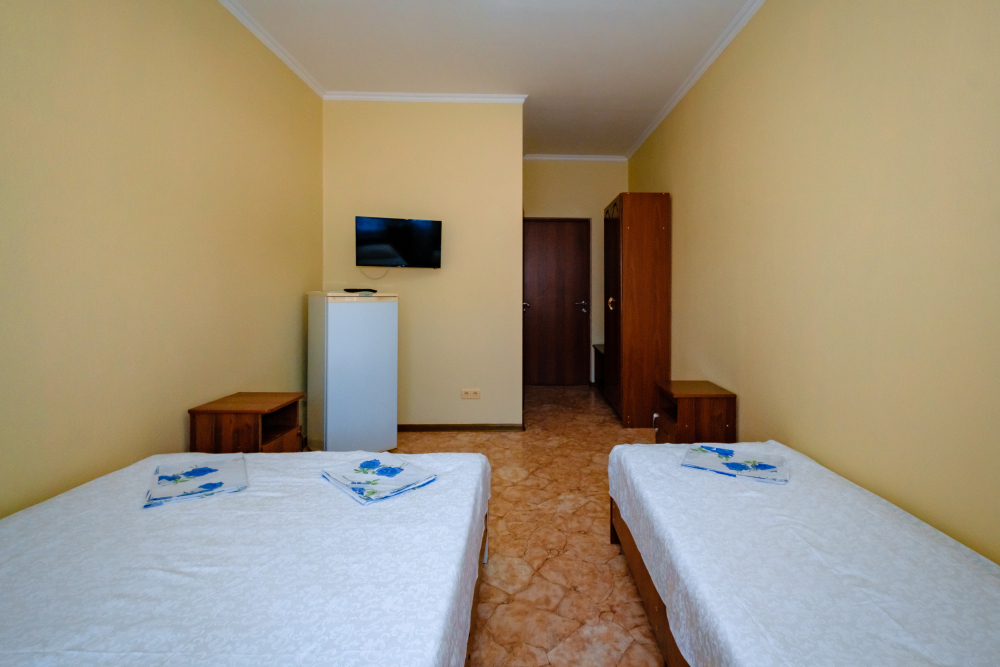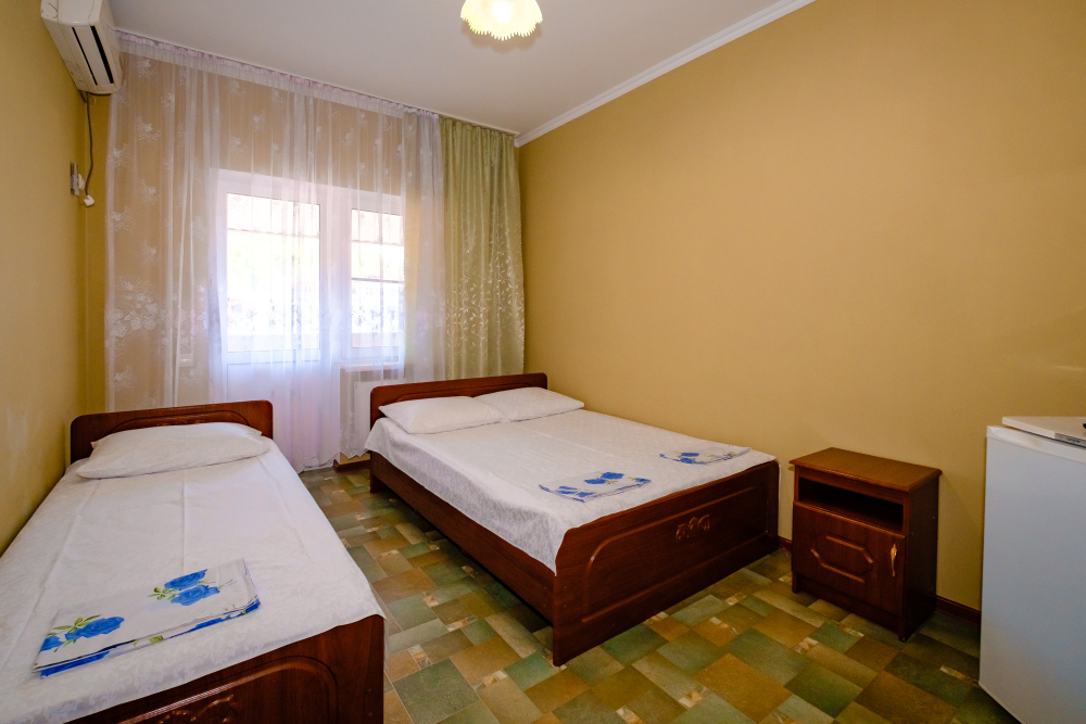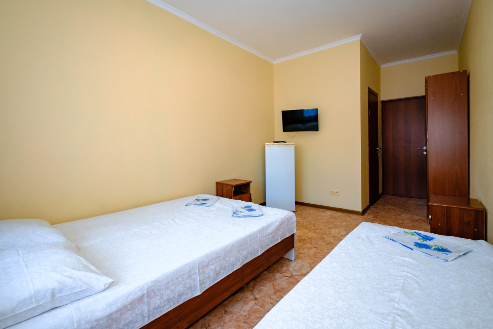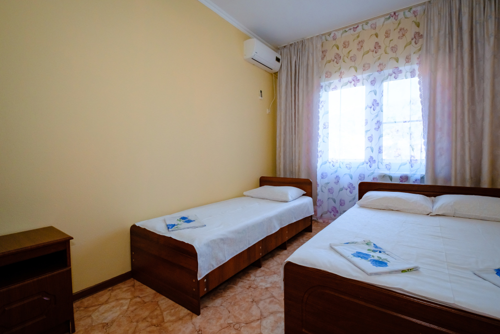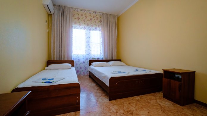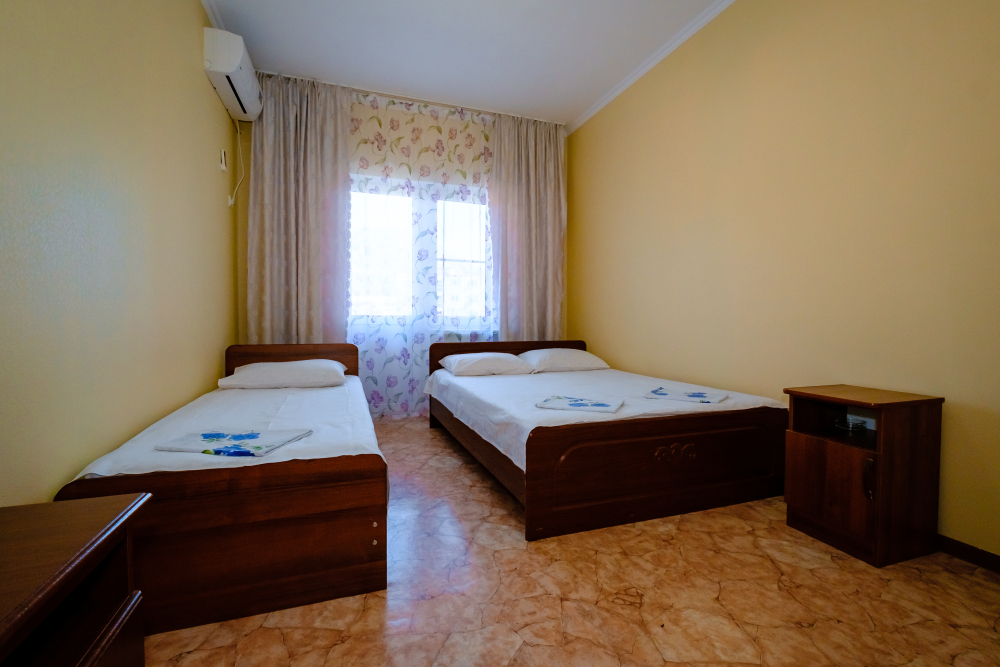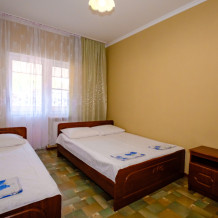 Трехместный номер состоит из одной комнаты в 17 кв.м., в номере имеется санузел и балкон. Также в номере имеются все необходимое для комфортного проживания. Кровать двухспальная шириной 160 см. и односпальная шириной 80 см. Идеально подойдет для семьи с ребенком от 5 лет. Стоимость указана за номер.