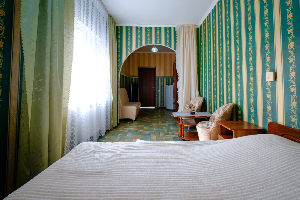 Номер состоит из двух смежных комнат. В обеих комнатах имеются кровати. С одной из комнат имеется выход на балкон. Отличный номер со всеми удобствами, идеально для семьи из 4−5 человек. Цена указана за номер.