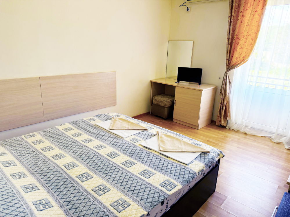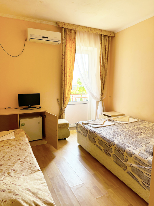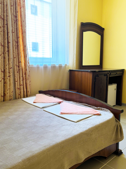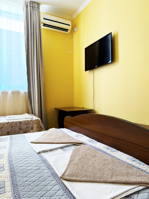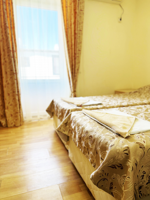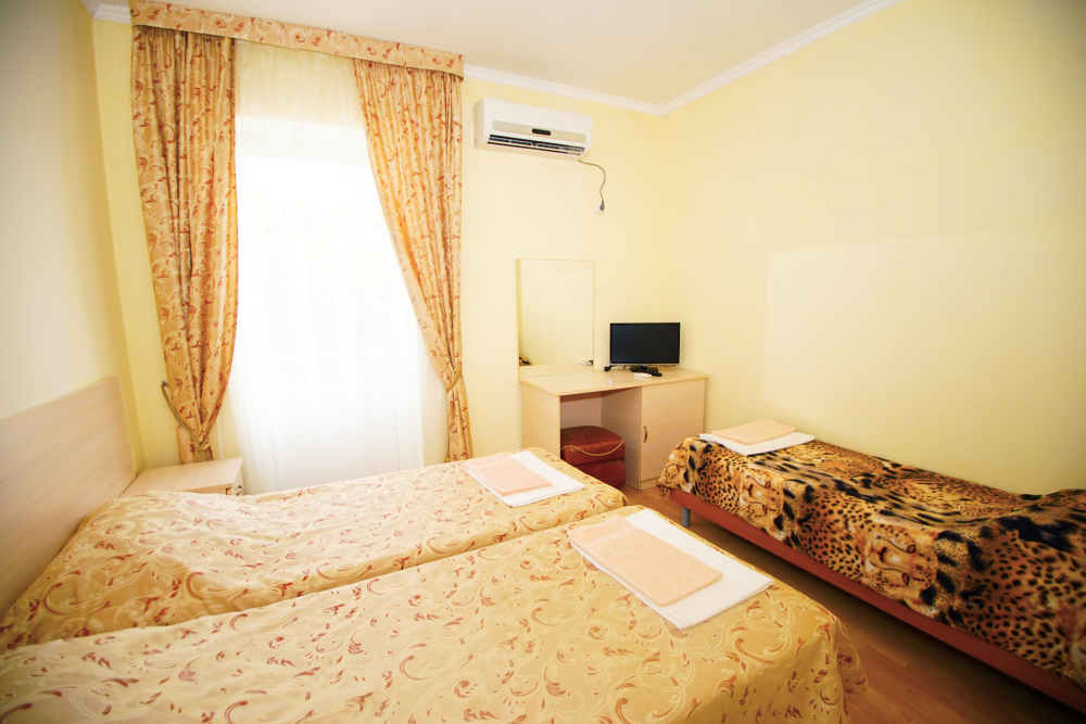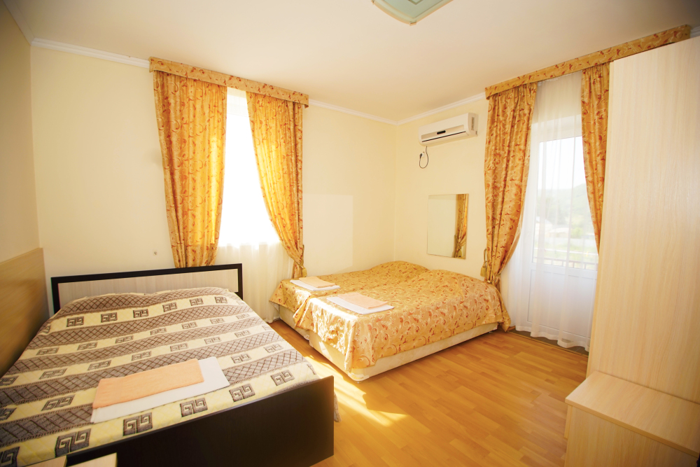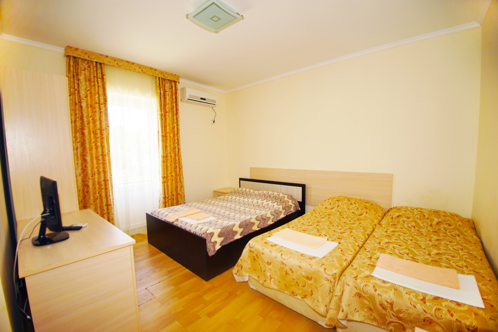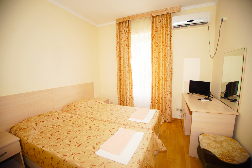 В нашей гостинице 24 номера, из которых можно выбрать 2,3,4,5-местные, среди них есть номера с отдельными комнатами и балконом. Все номера оснащены всем необходимым: полными санузлами, кондиционерами, комфортными кроватями, небольшими холодильниками и телевизорами с плоским экраном. Ванные комнаты укомплектованы основными банными принадлежностями.