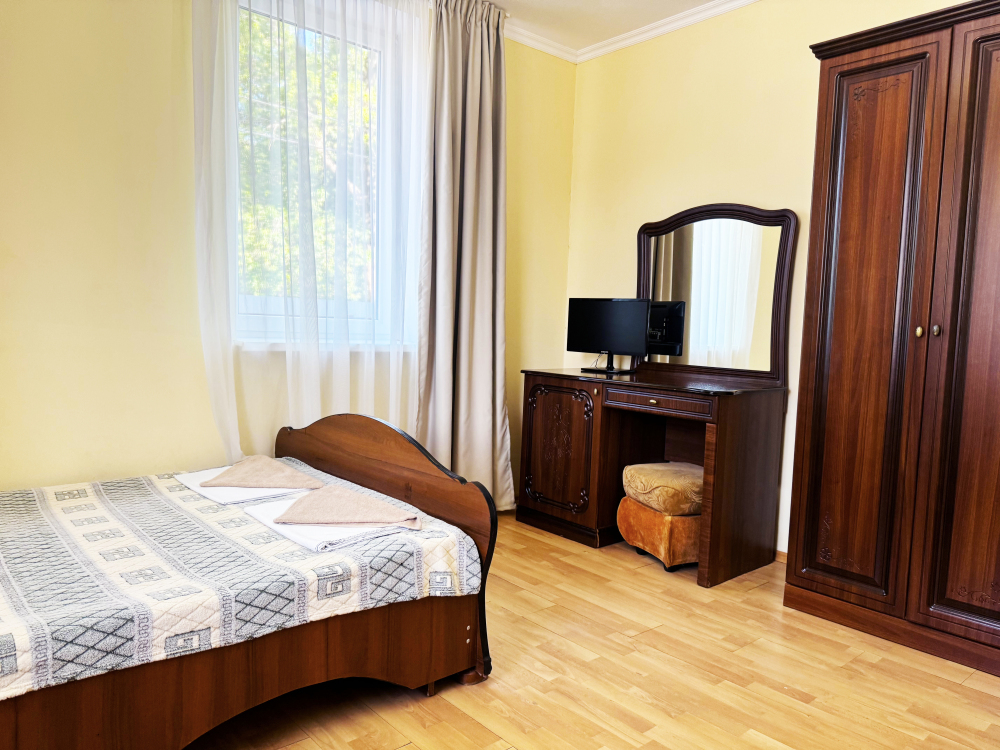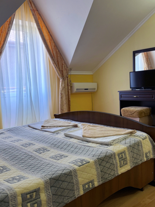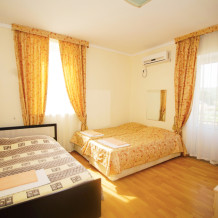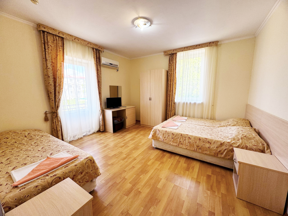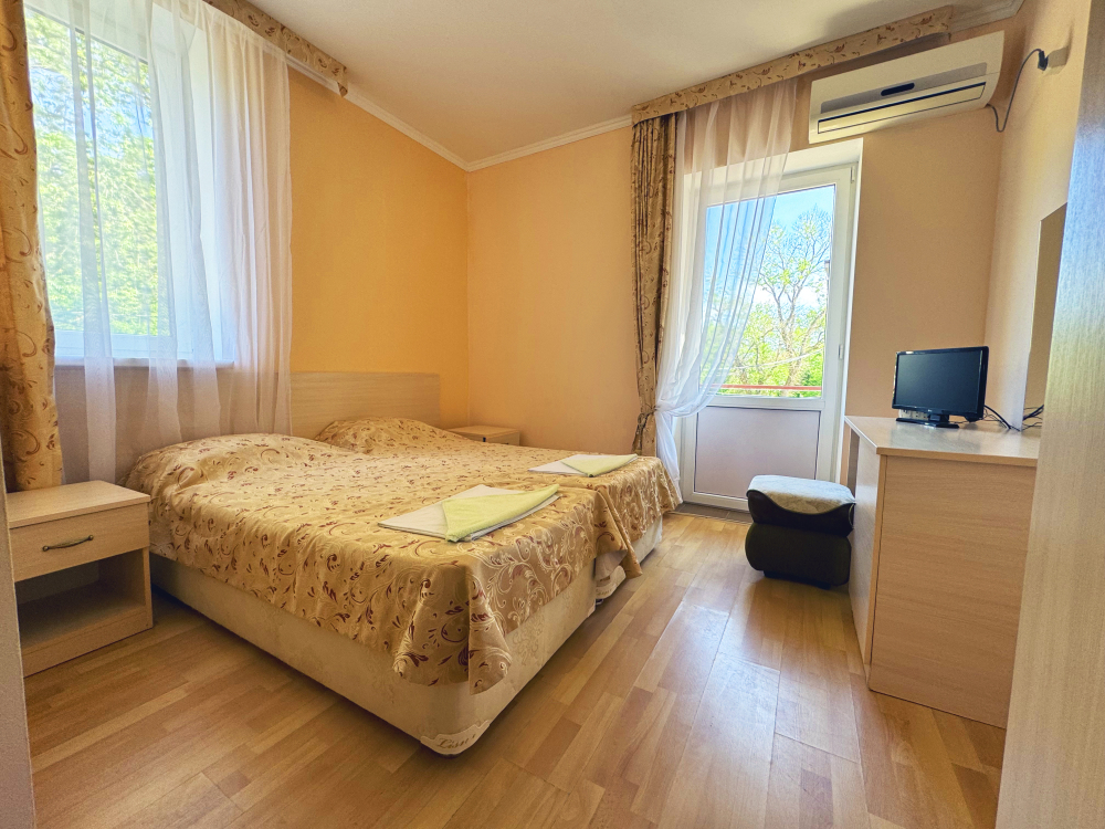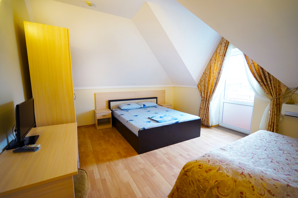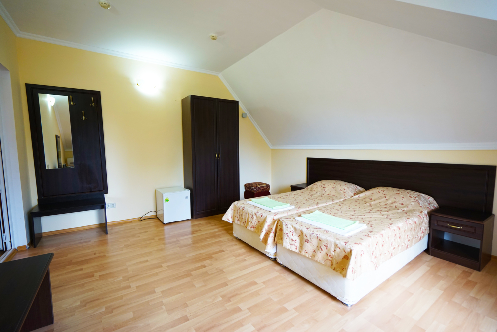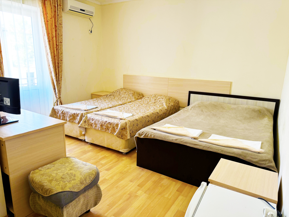 В нашей гостинице 24 номера, из которых можно выбрать 2,3,4,5-местные, среди них есть номера с отдельными комнатами и балконом. Все номера оснащены всем необходимым: полными санузлами, кондиционерами, комфортными кроватями, небольшими холодильниками и телевизорами с плоским экраном. Ванные комнаты укомплектованы основными банными принадлежностями.