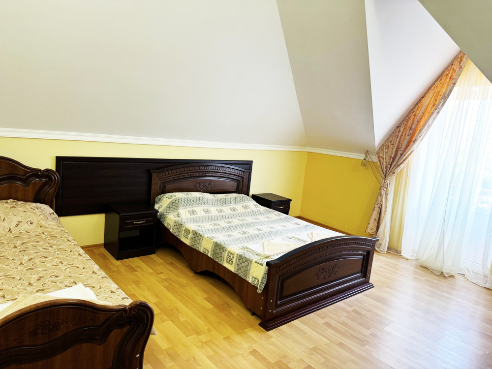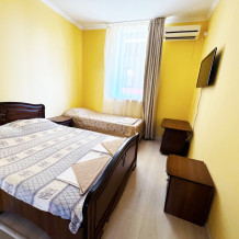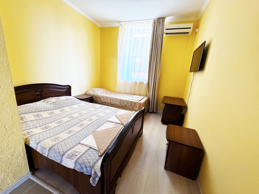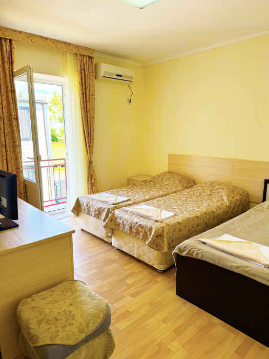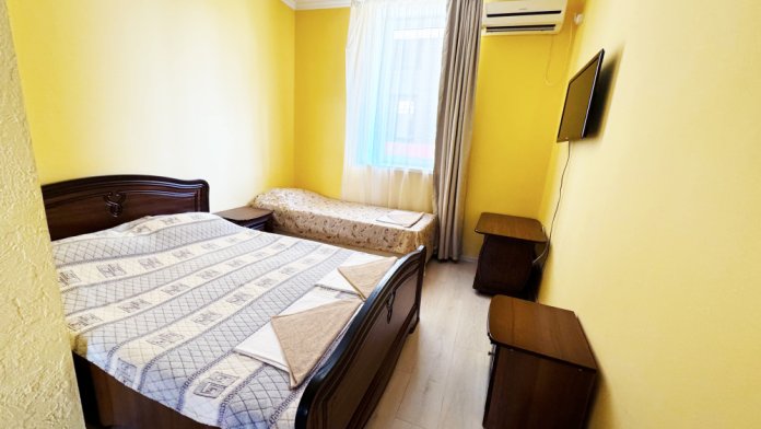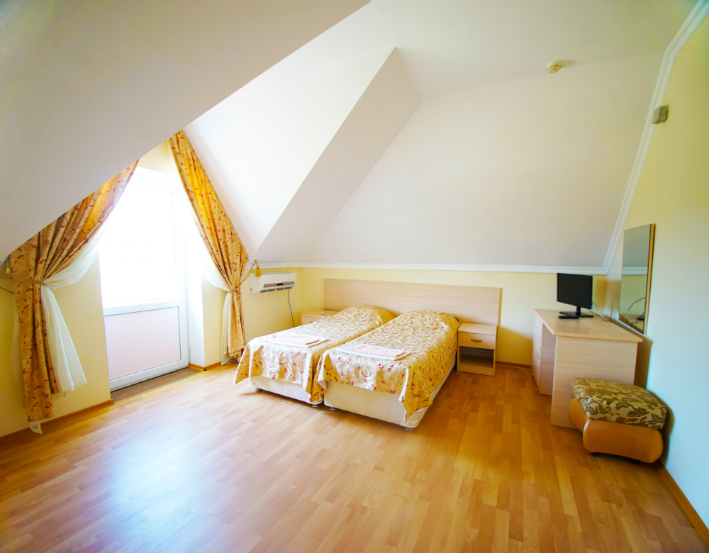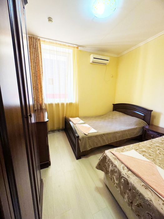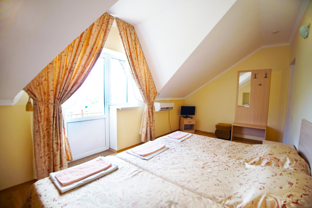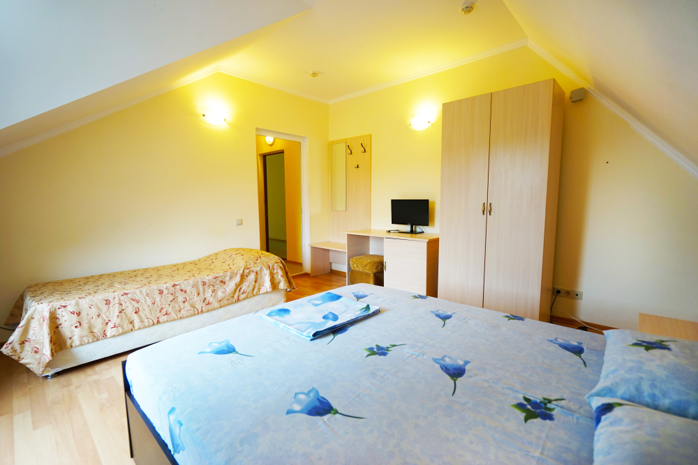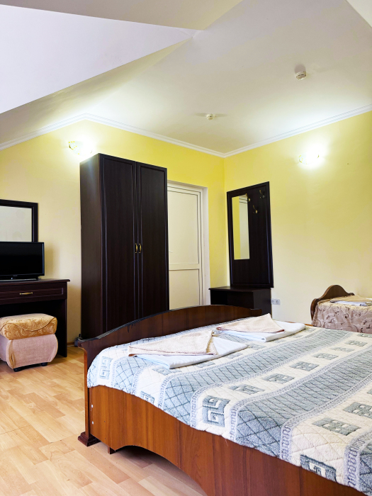 В нашей гостинице 24 номера, из которых можно выбрать 2,3,4,5-местные, среди них есть номера с отдельными комнатами и балконом. Все номера оснащены всем необходимым: полными санузлами, кондиционерами, комфортными кроватями, небольшими холодильниками и телевизорами с плоским экраном. Ванные комнаты укомплектованы основными банными принадлежностями.