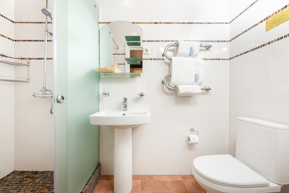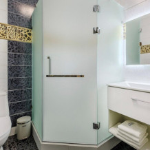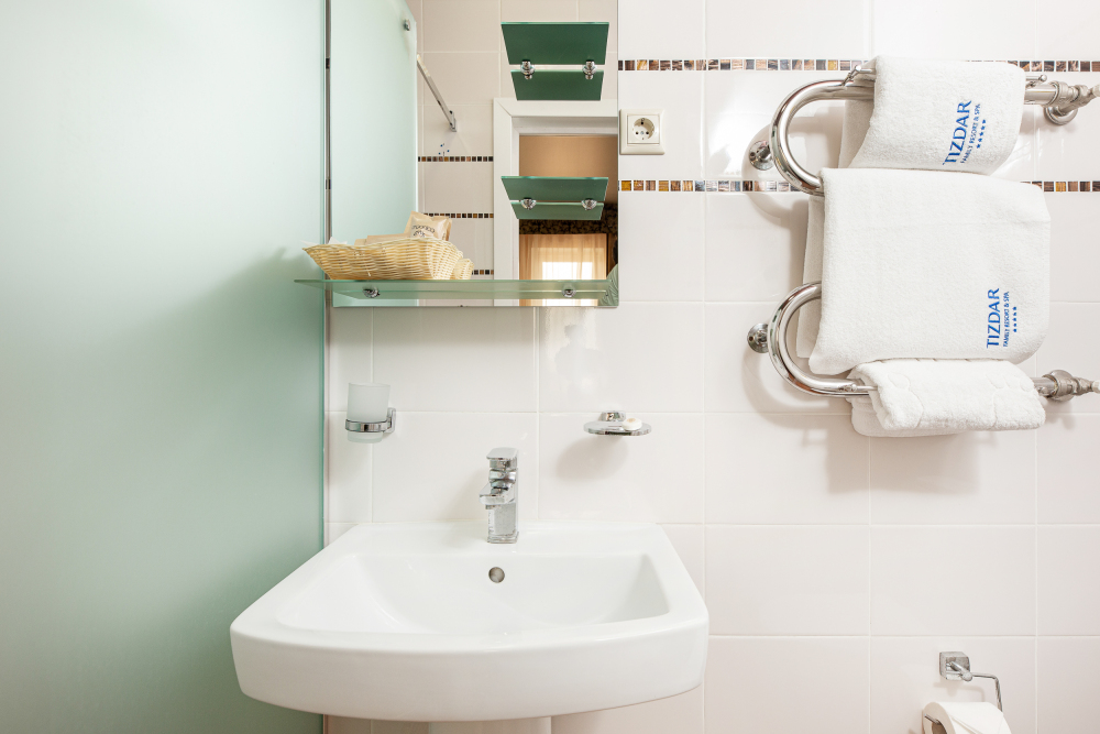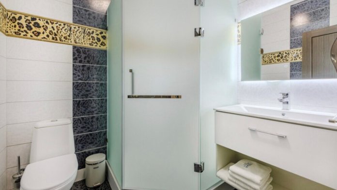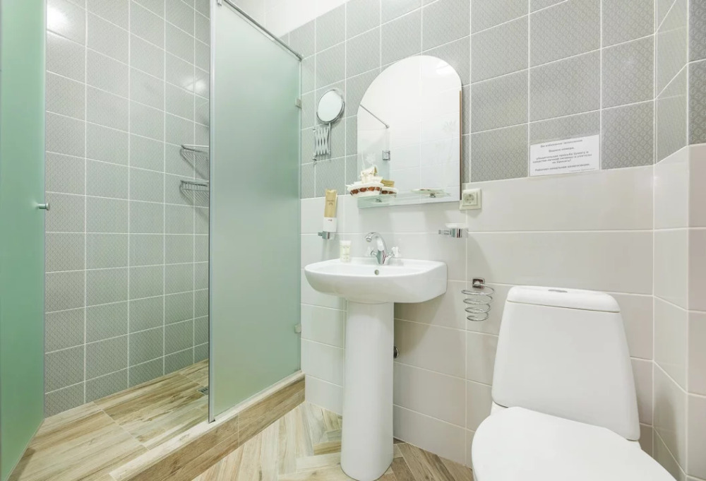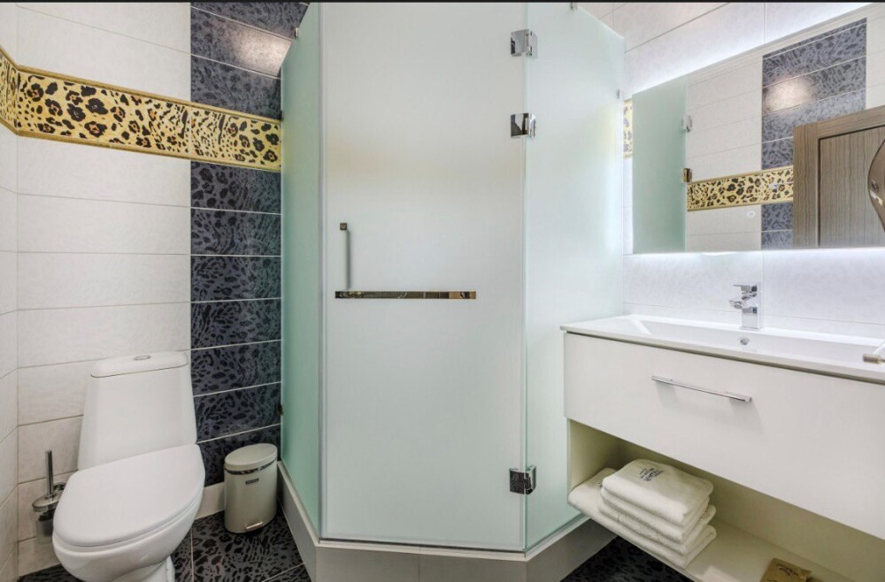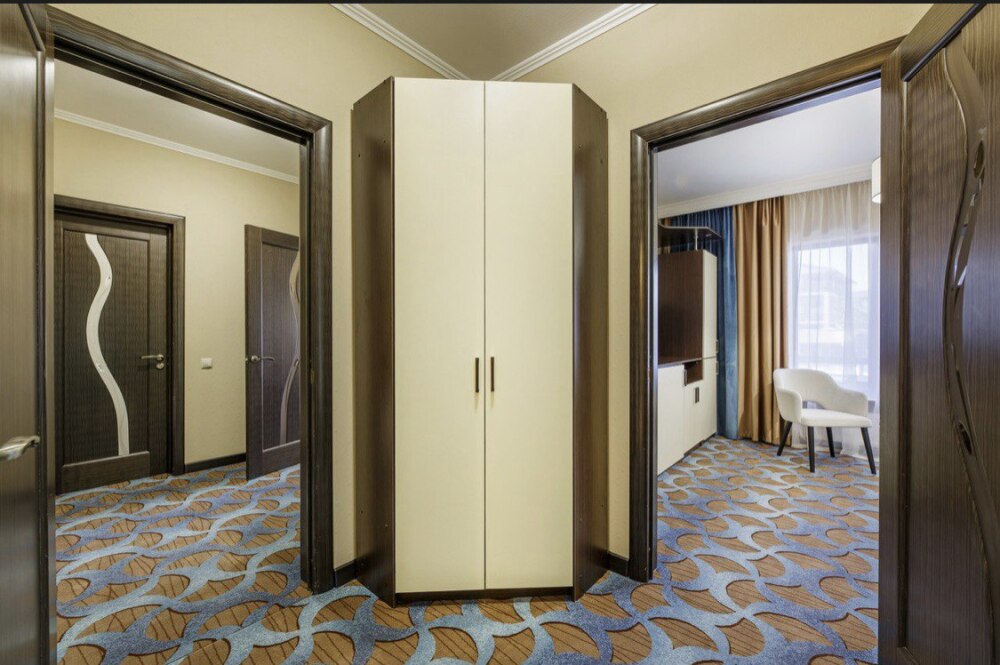 В ванной комнате: душ, косметическое зеркало, фен, банные принадлежности и гостиничная парфюмерия. В данной категории номеров 2 сан. узла.